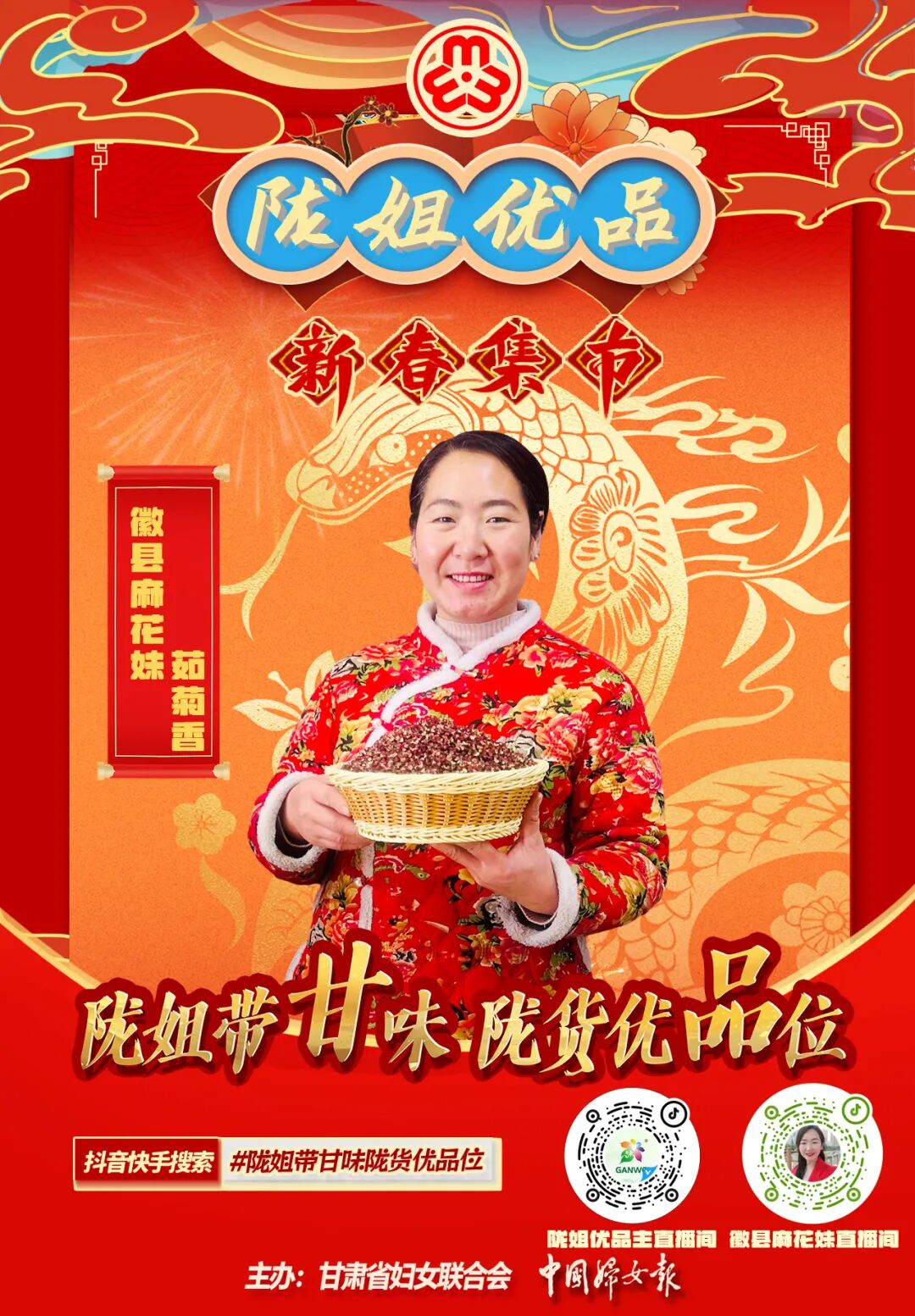 省妇联、中国妇女报社联合举办的“陇姐带甘味·陇货优品位”陇姐优品新春集市元旦专场活动取得了首场开门红,为了进一步发挥妇联组织在拓展“甘味”农产品和“陇原巧手”产品销售渠道中的积极作用,促进妇女增收,助力“甘味出陇”,优品出圈,陇姐优品新春集市腊八专场活动即将隆重登场。此次专场主直播间设在甘肃省“甘味”品牌中心,全省14个市州、兰州新区70多个直播间将同步开展促销活动。期间将集中展销上百种绿色有机“甘味”农产品和独具地方特色的“陇原巧手”产品。