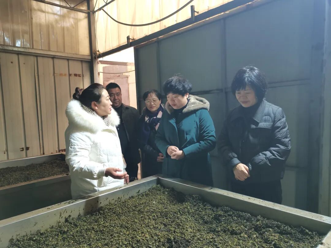 在甘肃蒲岳农业科技有限公司 , 当了解到企业目前经营发展态势良好、企业各款茶产品线上线下销售渠道广、带动妇女就业充分,调研组对企业生产经营给予充分肯定,并鼓励企业负责人要不断创新发展理念,发挥好“巾帼领头雁”的作用, 带领妇女姐妹积极参与乡村振兴,走向共同富裕,让家乡的蒲公英茶走出大山、走出甘肃、走向更广阔的市场。