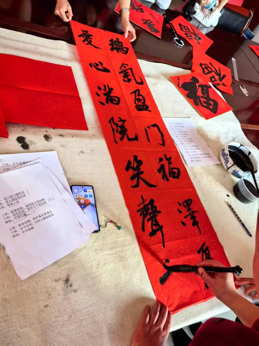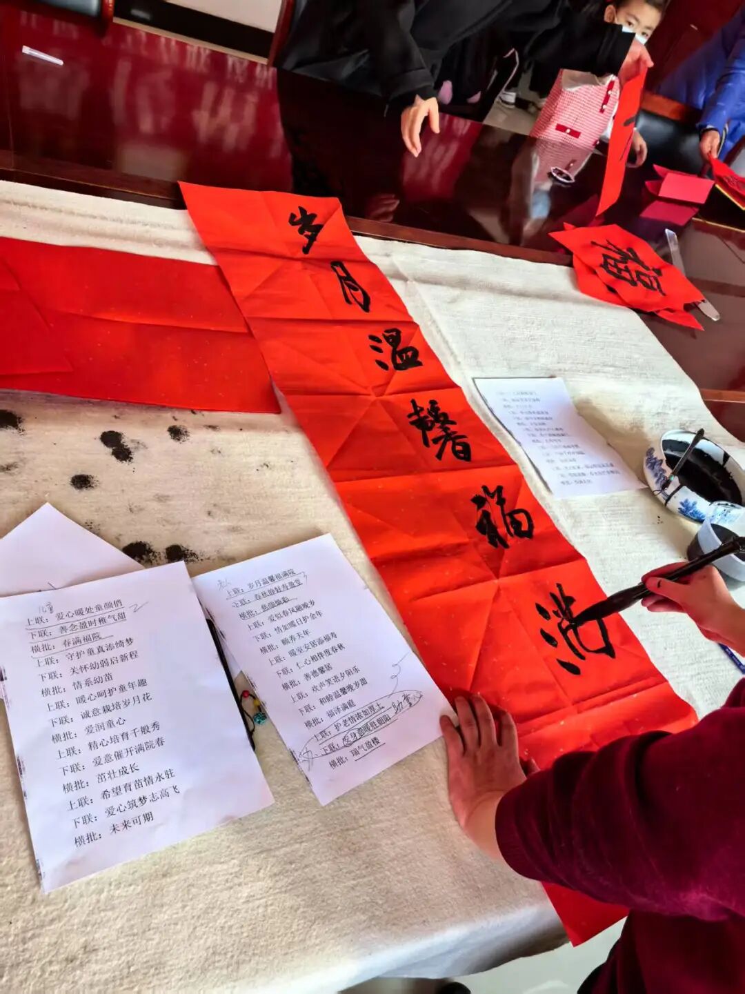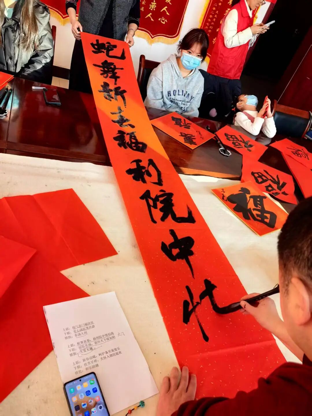 写春联、送福字,是笔尖上陈久弥香的年味,是记忆里红红火火的福祉,也是中国传统文化传承千年的宝藏,书法家志愿者们在现场挥毫泼墨,书写着对孩子们的新春祝福和对孩子们的殷切期盼,情暖冬日,爱洒童心。