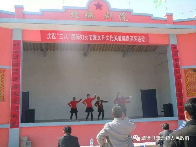 3月8日上午,在双龙乡北城剧院开展以“展风采、促和谐”为主题的庆三八文艺演出活动。来自全乡200多名妇女同志观看并参与了演出,共同庆祝自己的节日。此次庆祝三八文艺演出活动得到了广大群众的广泛好评,既增强了全乡广大妇女们的身体素质,丰富了广大妇女的文化生活,同时又增进了全乡妇女团结和友谊,展示了广大妇女的优美舞姿,展现了广大妇女健康文明、积极向上的精神风貌,营造了妇女半边天精神文化的良好氛围。