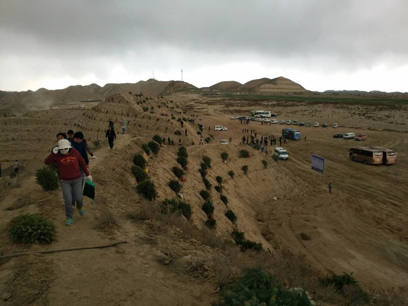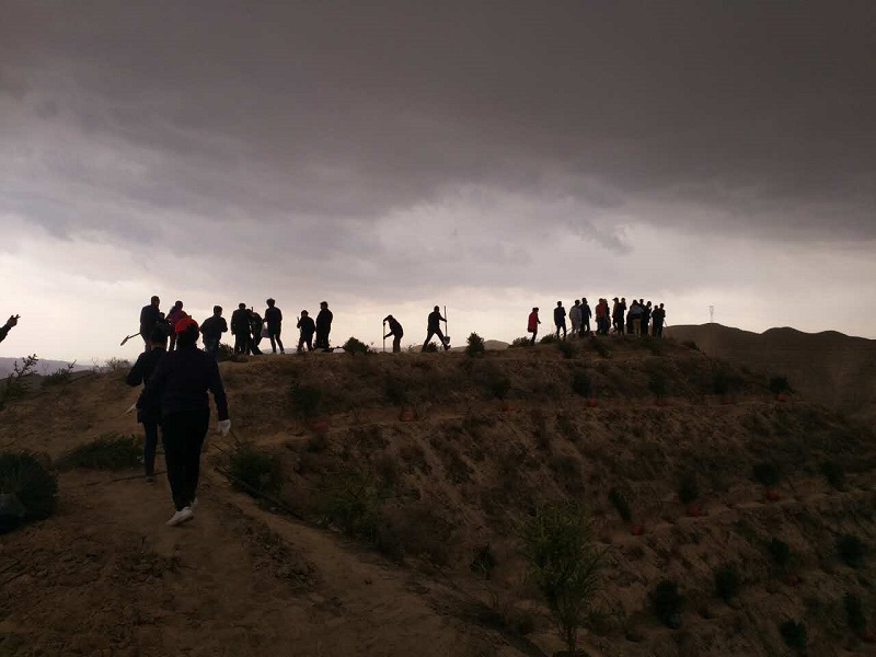 虽然天气突变,天空还下着大雨,还是阻挡不了干部群众们植树的热情。植树点呈现一派热火朝天的忙碌景象,大家挥舞铁锹,挖坑、栽树、浇水,植下了一棵棵象征着绿色与希望的树苗;参加活动的干部们个个干劲十足,两人一组、三人一群地忙碌着,认真地完成着从挖坑、放树、填土、踩实到最后浇水的每一个步骤。经过近2个小时辛勤地劳动,原本荒芜的黄土地变得绿意盎然,尽现勃勃生机。