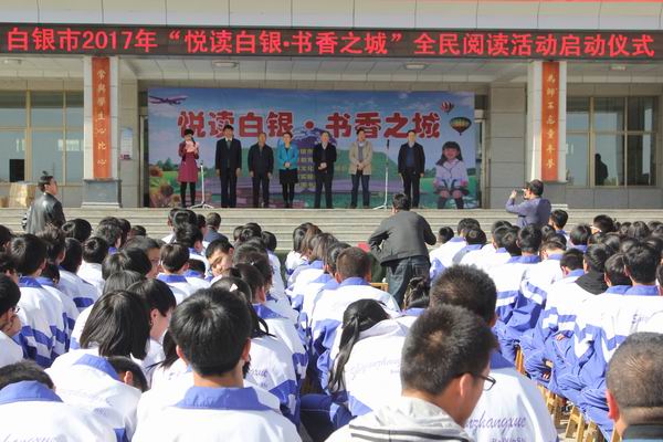 4月21日下午,白银市“悦读白银·书香之城”全民阅读活动启动仪式在实验中学举行。市政协副主席詹登龙出席会议,市委宣传部、市妇联、教育局、市文广新局等部门领导、实验中学师生1000多人参加了启动仪式。