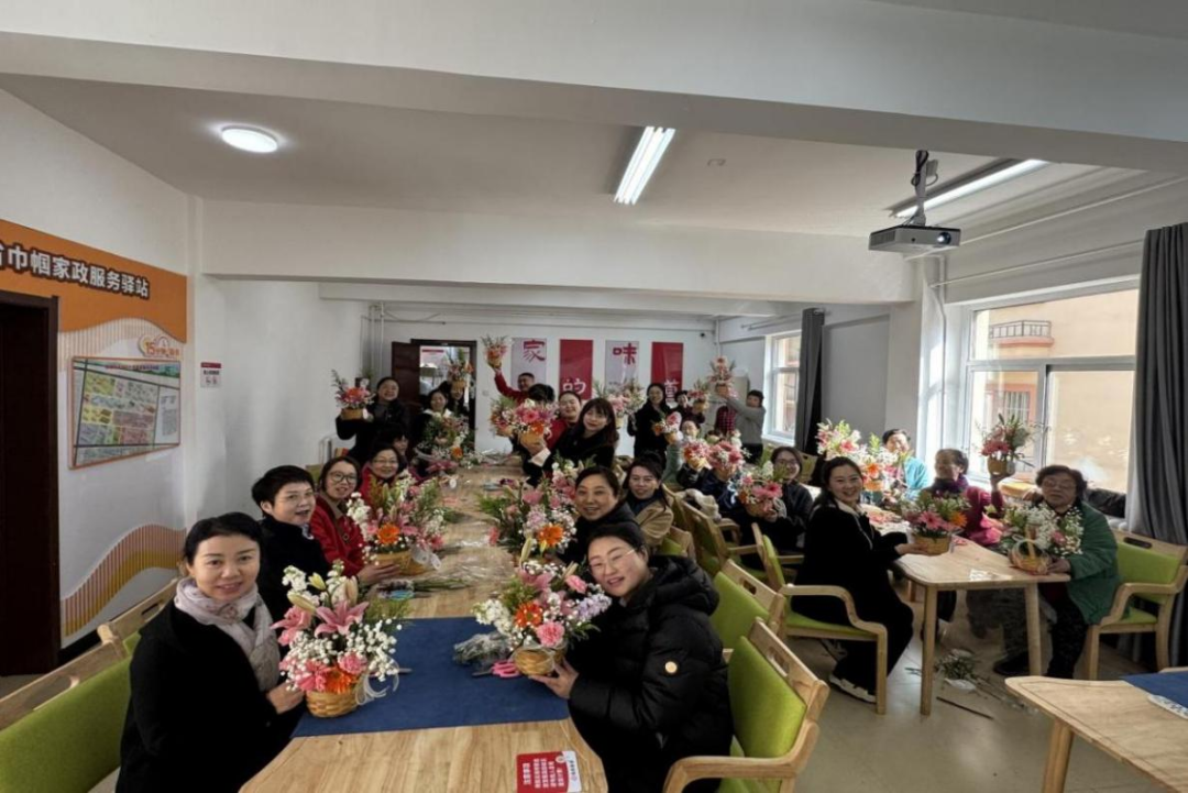 驿站依托“妈妈岗”系列技能培训,在党组织的支持与推动下,为社区妇女搭建了家政服务技能提升的平台。在元宵花灯、三八插花、端午包粽子等活动中,社区党员志愿者积极参与组织和引导,巧妙融入技能学习元素,让居民在参与传统节庆活动的同时,掌握了实用的生活和就业技能,如手工制作、花艺、家庭整理等。此外,党组织还邀请了专业的家政培训讲师,为社区妇女开展针对性的技能培训课程,并鼓励社区女党员带头学习,发挥示范引领作用。这些技能的提升不仅改善了家庭生活品质,也增强了妇女的就业能力,为巾帼家政企业的发展壮大奠定了坚实基础,实现了党建工作与就业服务的深度融合。