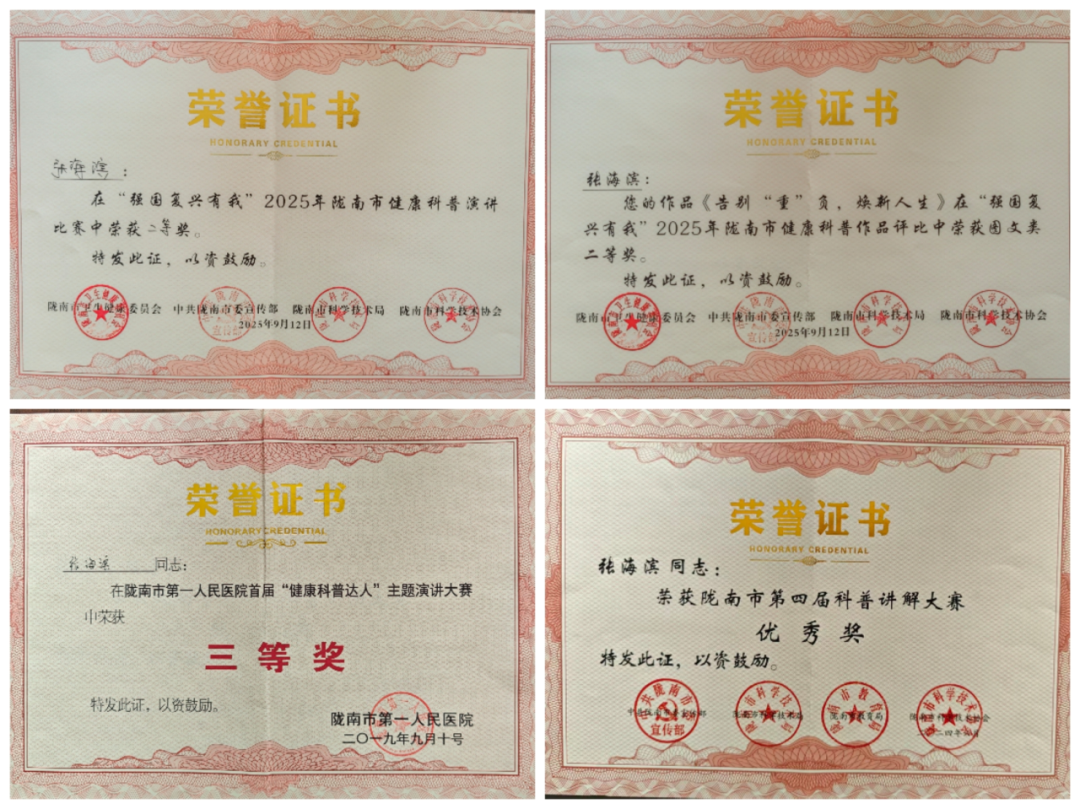 赛事参赛扩大影响。 主动参与省市级、院级健康科普作品创作及演讲比赛,聚焦儿童生长发育、全人群体重管理两大核心领域深耕科普内容,累计完成参赛作品10部,斩获一等奖1项、二等奖4项、三等奖1项及优秀奖若干,以赛事为载体,向全社会广泛传播科学健康理念,提升科普影响力。