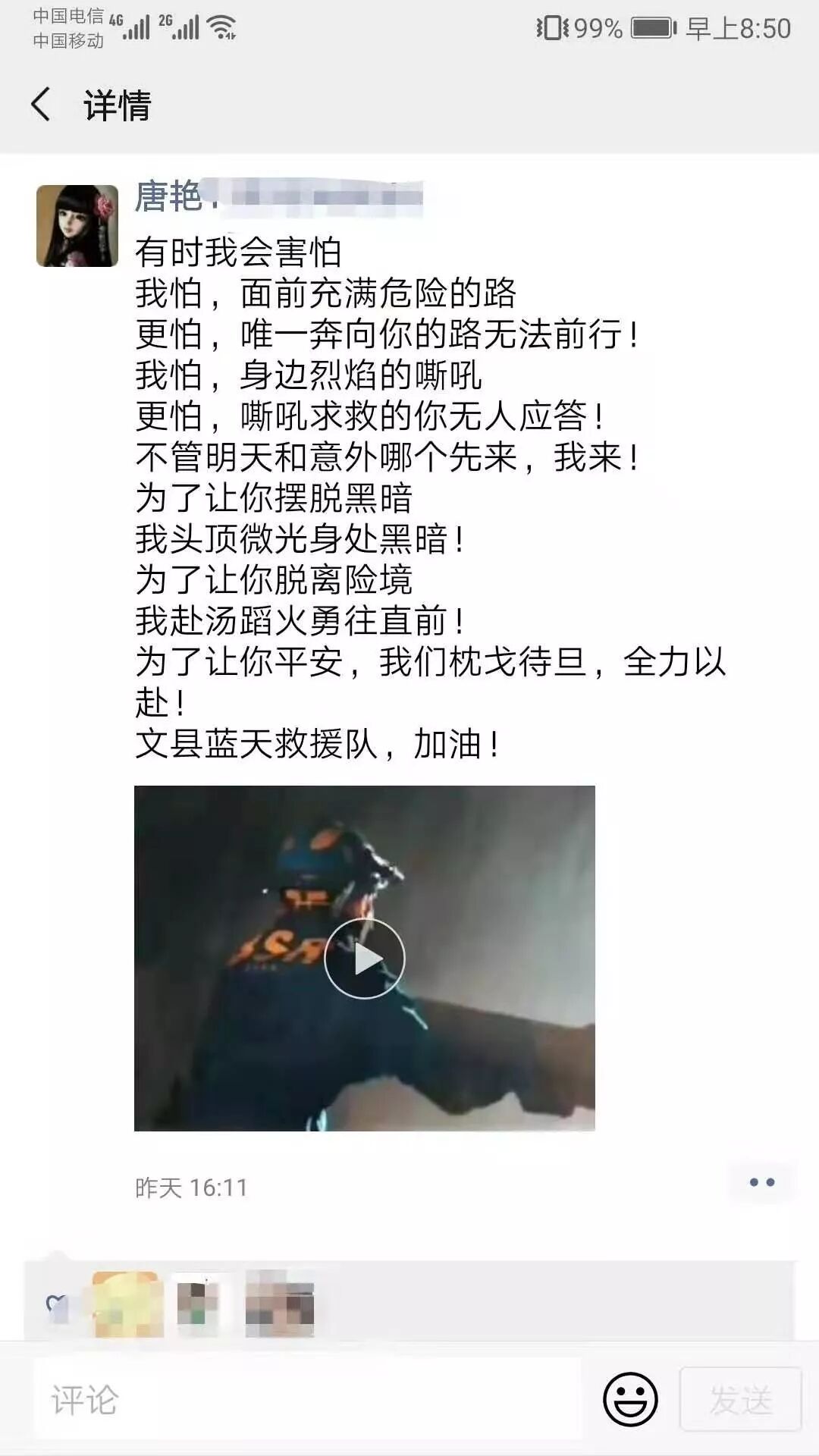 唐艳:坚守志愿平台 传递爱心的蓝天辣妈 在美丽的甘肃南大门文县,活跃着这样一支队伍,哪里遇到灾害需要救援,哪里就会出现他们的身影;哪里需要帮助,他们就会自发组织给予最大的帮助;他们借用网络创建志愿平台,他们用自己的实际行动做公益传播正能量。这就是甘肃蓝天救援队文县筹备队。然而,就是这样一个跋涉于各种救援场地的队伍,却在一位有着娇小身体的辣妈的带领下完成了一次又一次的救援任务。她,就是文县蓝天救援队的发起人、队长——唐艳。 家乡的两次洪灾对她触动很大,她觉的我们文县应该有一支属于自己的专业救援队。于是,她积极和甘肃省蓝天救援队沟通协调,终于,文县救援队在唐艳的积极筹备下成功创建。如今担任队长的她,依旧不忘初心,哪里需要帮助,她便义不容辞。 2018年,唐艳被文县文明办、文县志愿者服务联合会授予县级“优秀志愿者”荣誉称号。2018年被陇南市委宣传部、陇南市文明办评为“最美志愿者”。小身躯却拥有大能量的她,在近几年里分别创建了文县信息群3个,销售群1个。在给大家提供便利的同时,她详细制定群规,规范管理群成员。并通过自己的实际行动,感染大家抵制网络阴霾,清朗网络空间,弘扬网络正能量。