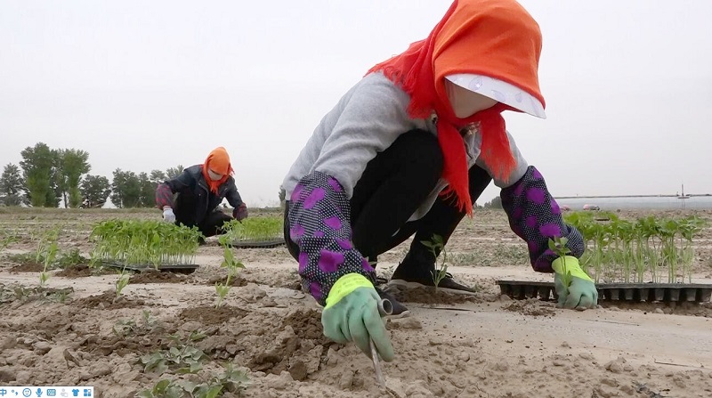 这几天,红联村300亩色素辣椒种植基地也是人潮涌动,忙碌一片。红联村九社村民吴雅琴是这批辣椒移栽的"短工族"一员,她告诉记者,在附近务短工,一天可以挣100元左右的工资,不仅能补贴家用,还不误农时。