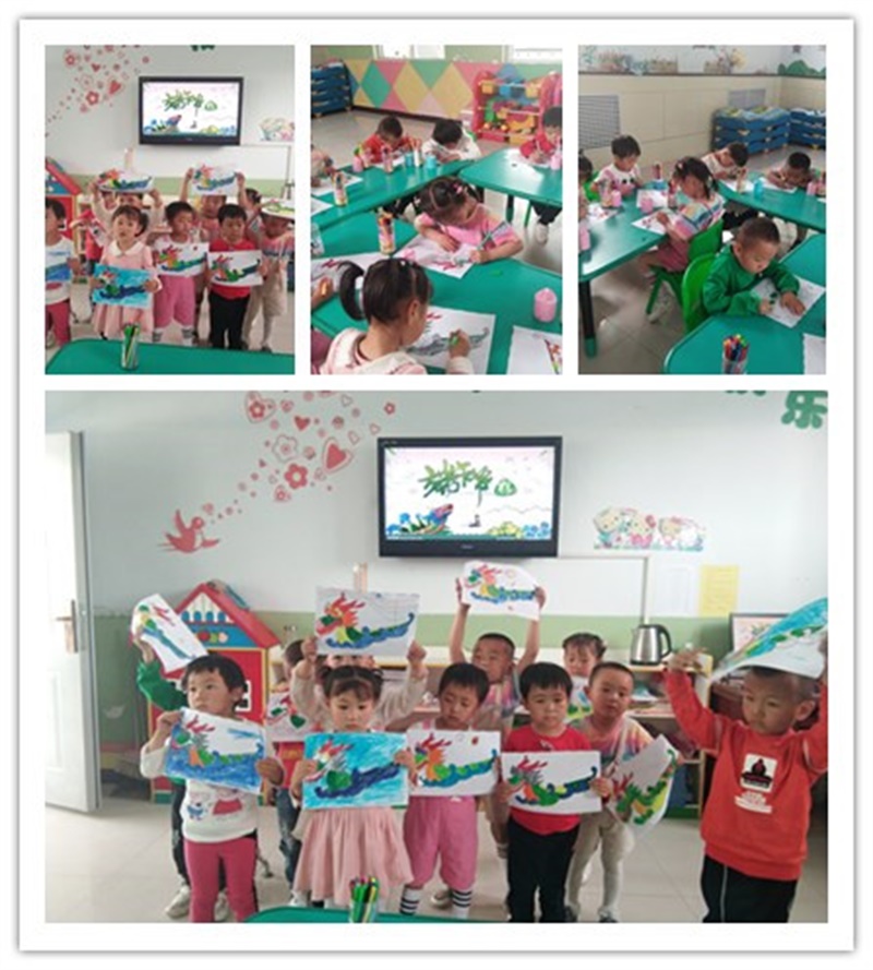 活动中,教师首先通过课件展示,小朋友观看了“端午节的风俗与来历”的相关视频,使幼儿知道了端午节的来历以及节日的独特风俗,如:吃粽子、赛龙舟、挂香袋等庆祝活动,让幼儿了解屈原的故事,激发他们的民族自豪感。孩子们拿起小画笔,画出了形态各异的龙舟,色彩明朗、线条流畅;亲自动手做香包,包粽子。我们一起去看看孩子们表现吧。