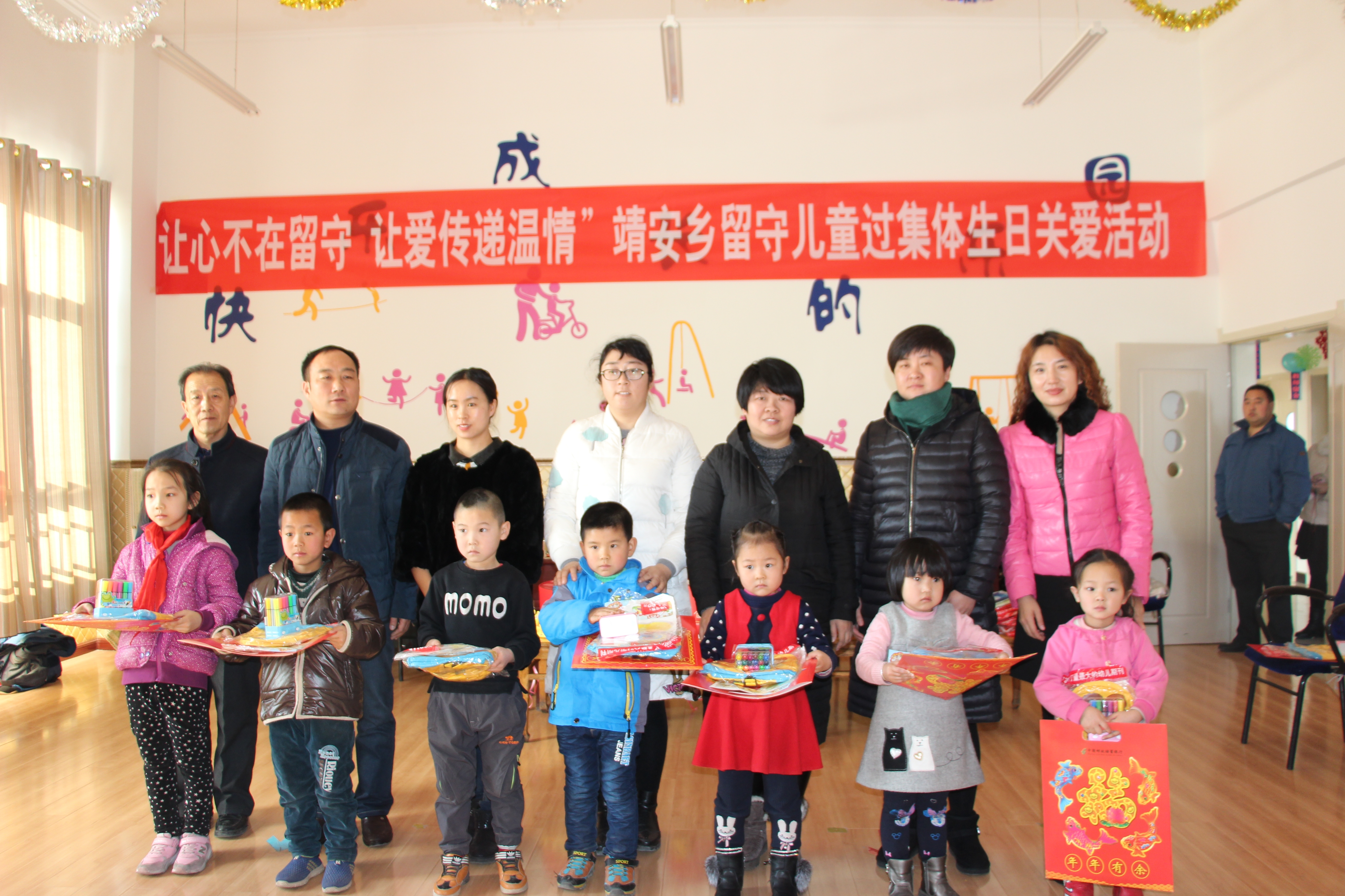 少年强则国强,青少年是祖国的未来,民族的希望。关 心青少年健康成长是全社会的共同责任,尤其是留守儿童是社会的弱势群体,更需要社会的关爱和帮助。元月5日下午,该乡妇联联合张掖市邮政分公司,在靖安乡中心幼儿园举行了留守儿童集体过生日活动。乡党委副书记、政府乡长白雪,乡党委副书记王培林,中心学校副校长,中心幼儿园院长,张掖市邮政分公司领导莅临了此次活动。
