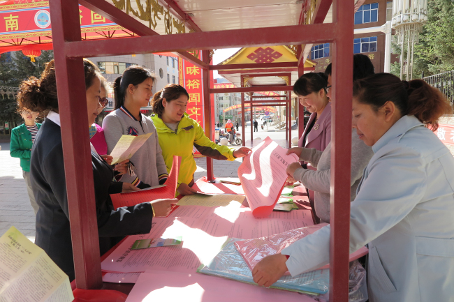 为加强各项就业创业扶持政策宣传,切实做好创业促就业工作,近日,肃南县隆畅社区妇代会在县城小广场开展了就业政策宣传活动。