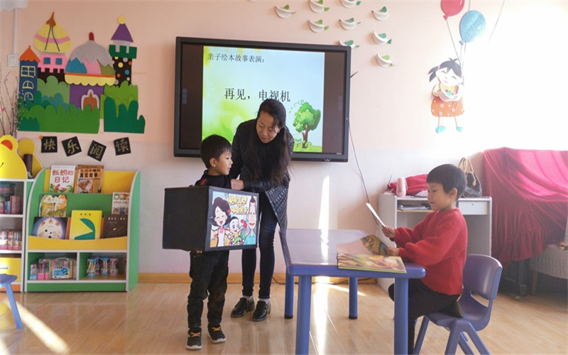 二是举行亲子绘本剧表演、家长助教活动。家长是幼儿园不可缺少的有利资源,是教师的重要合作伙伴。大班组以班级为单位,推选一个家庭进行 “亲子绘本剧表演”。 这些绘本经过老师和家长的精心设计、巧妙编排,借助音乐、道具、服装等,通过家长和孩子们生动活泼、绘声绘色的表演,将故事完整地诠释出来。中小班家长绘本助教活动以绘本为载体,由家长和孩子一起演绎绘本内容。亲子绘本剧表演、家长助教活动,激发了家长对幼儿阅读兴趣和阅读能力的培养,增进了亲子间的情感交流,让家长与孩子共享亲子合作演绎绘本所带来的快乐,也让台下的观众感受到绘本剧表演、家长助教的魅力,让他们再次对熟悉的绘本进行了别样的阅读。