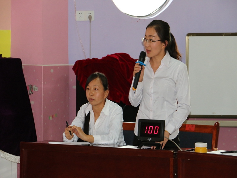 随后竞赛进入第一个环节“崭露头角”必答题。这一环节每队每人必答一题,每队必答2题,在这一环节,可能因为比赛刚开始老师们有些紧张,有个别老师的答案不正确,场上比分一下就有了差距。在进入第二环节“勇往直前”风险题以后,各竞赛组选手,都已充分适应了赛场氛围,10分、20分、30分老师们选题的分数一次比一次高,难度一次比一次大,可是却无一答错,三组队员无一失分,场上气氛开始升温。为了让场上选手有机会缓口气,主持人在这一环节结束,让台下观赛的老师以抽牌定论的形式回答问题,台下老师也是特别给力,六次抽答无一答错,均为本组赢得20分。活动的第三个环节是“争分夺秒”抢答题。这一环节将竞赛现场推向了高潮,只见各组都有一名老师双手死死扣在抢答器上,主持人的题目刚一念完,场上就会出现“×号台犯规”的提示声,就这样,主持人一次次的提醒,老师们一次次的犯规,这样来来回回折腾了好几次,会场上的笑声一浪高过一浪,最后,还是一楼组王爱霞老师巧妙的掌握了抢答器的奥秘,10道抢答题一楼组抢到7次,也因此她们成功的从场上最低分一路飙升,以高出第二名三楼组20分的成绩获得此次竞赛活动的第一名。
