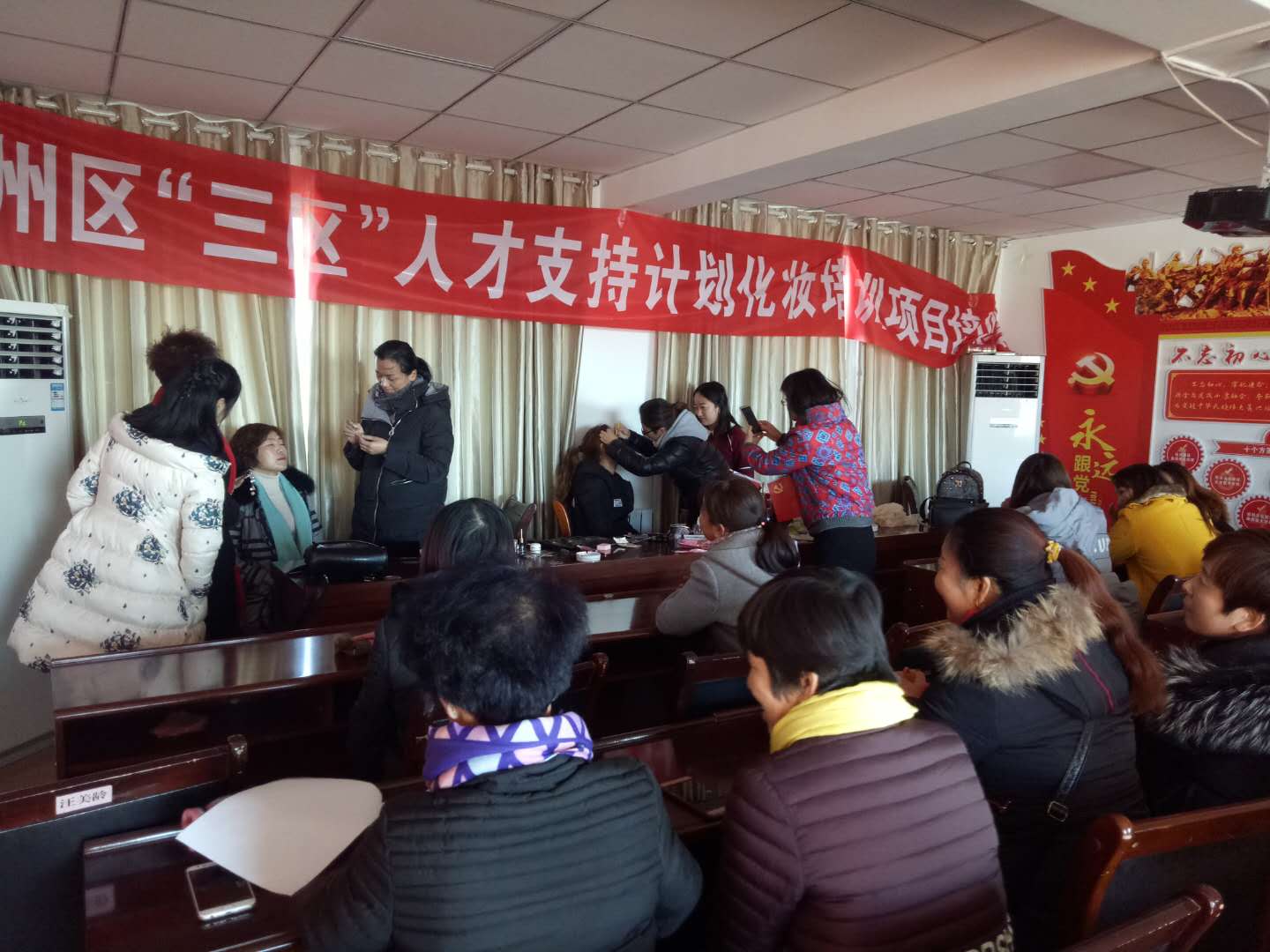 此次培训专业有广场舞、化妆、秦腔戏剧、书画、剪纸、手工编织、图书服务等七个方面内容,分别在下二闸村、前进村、五座桥村和镇机关设立培训分会场。采取讲座、现场示范、互动交流与自我操练等多种形式进行培训,让参训学员们更好的掌握所学技巧。各培训分现场培训老师严谨专业,讲解浅显易懂、生动有趣,学员态度积极认真,气氛非常热烈。