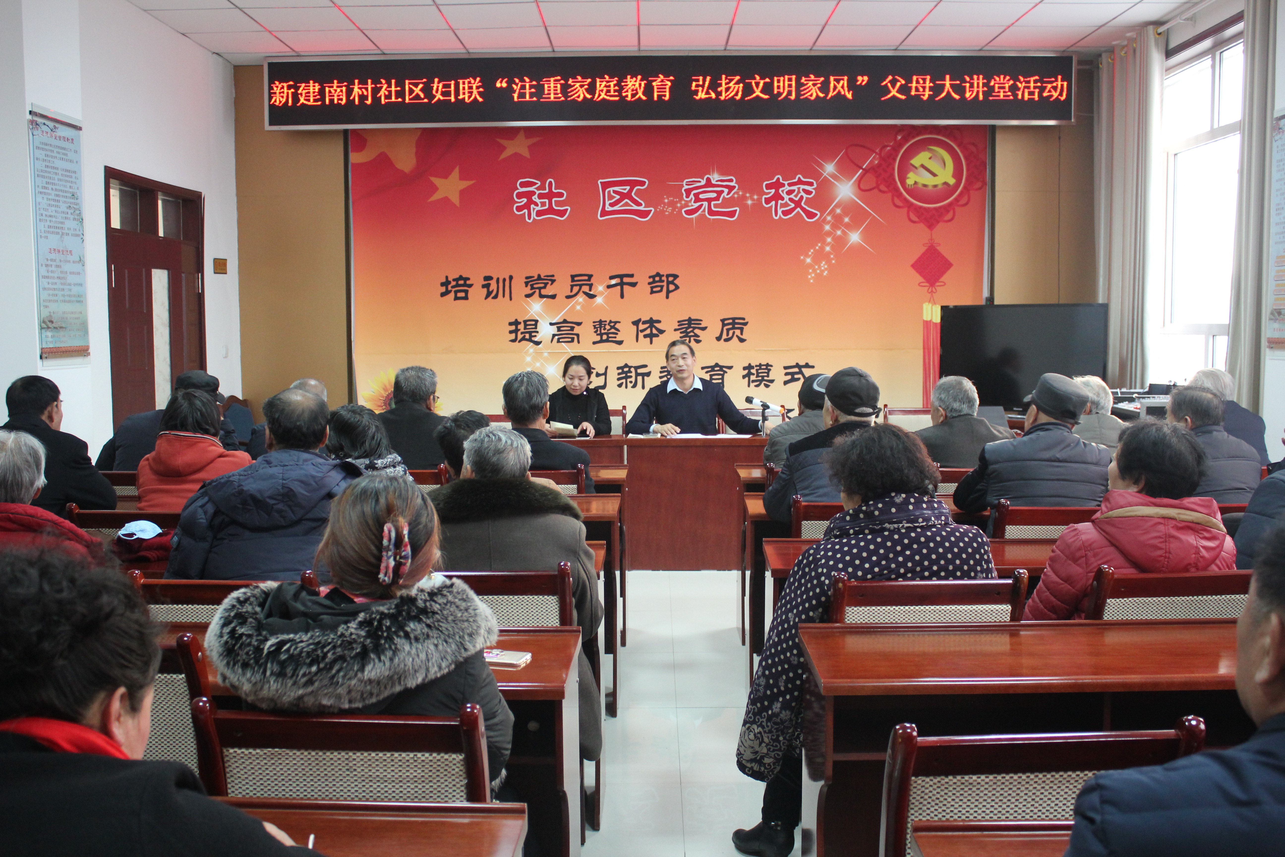 为进一步更新辖区居民家庭教育理念,帮助其树立正确的家教理念,近日,高台县城关镇新建南村社区妇联开展了“父母讲堂”宣传教育活动,辖区百余名居民参加了活动。