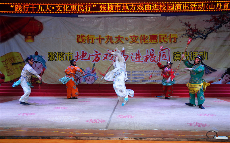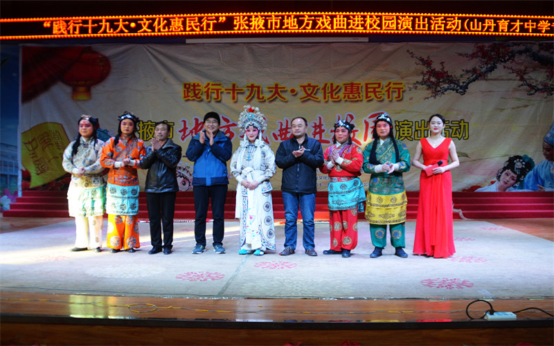 12月5日晚,由张掖市文广新局、市教育局主办,张掖市七一剧团、山丹县文广新局、县教育体育局承办的“践行十九大·文化惠民行”地方戏曲进校园演出活动走进山丹育才中学,两次专场演出共有一千二百余名师生观看。