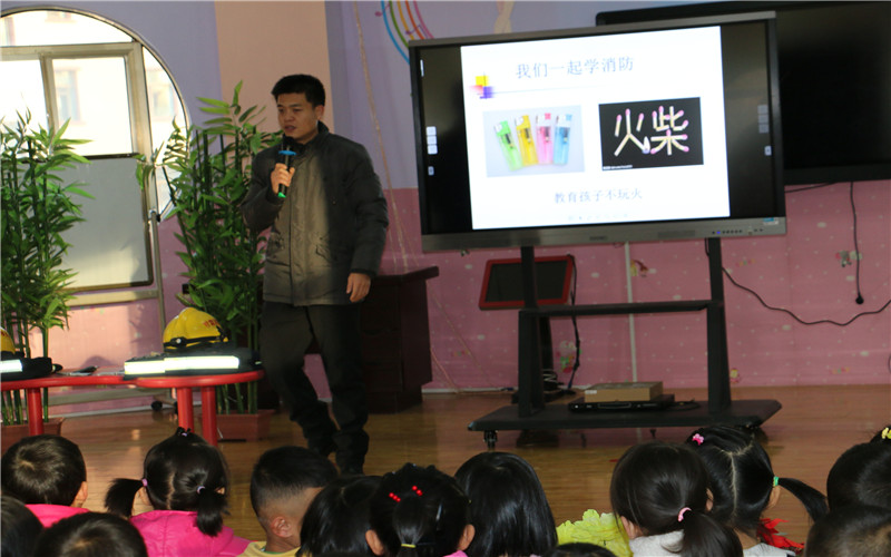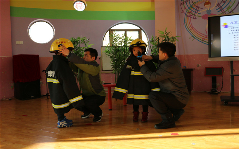 家长是幼儿园重要的合作伙伴,家长的职业、阅历、特长对幼儿园来说就是一笔丰富的教育资源。为了促进家园沟通,丰富教育资源,开阔幼儿的视野,促进幼儿的全面发展。12月7日,山丹县清泉幼儿园妇委会组织幼儿园大班组特邀请大三班黄志远的爸爸北京公安消防总队朝阳支队消防员黄建平家长与他的战友张晓华同志以及山丹县中医院内科主治医师来到我们幼儿园进行了两节别开生面的家长助教活动,我园后勤组水、电、暖负责领导老师及大班组负责领导、老师、幼儿全程参与了此次家长助教活动。