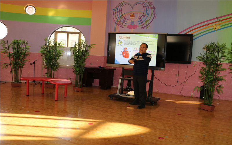 在孩子稍做休息以后,山丹县中医院内科主治医师静怡爸爸为我们做了一讲有关健康的助教活动,活动中静怡爸爸通过形象的图片和生动的讲解让孩子们对自己的身体有了大致的了解,他用儿童话的语言告诉孩子们大脑、心脏、肺、肝脏等重要器官的功能。王医生结合个人临床经验通过与孩子们的互动交流,教给孩子在日常生活中保护自己不受伤的方法。向孩子们介绍了各种食材的营养价值及食物对我们身体的好处,从而教育孩子们从小不偏食,多吃蔬菜水果,多做运动。