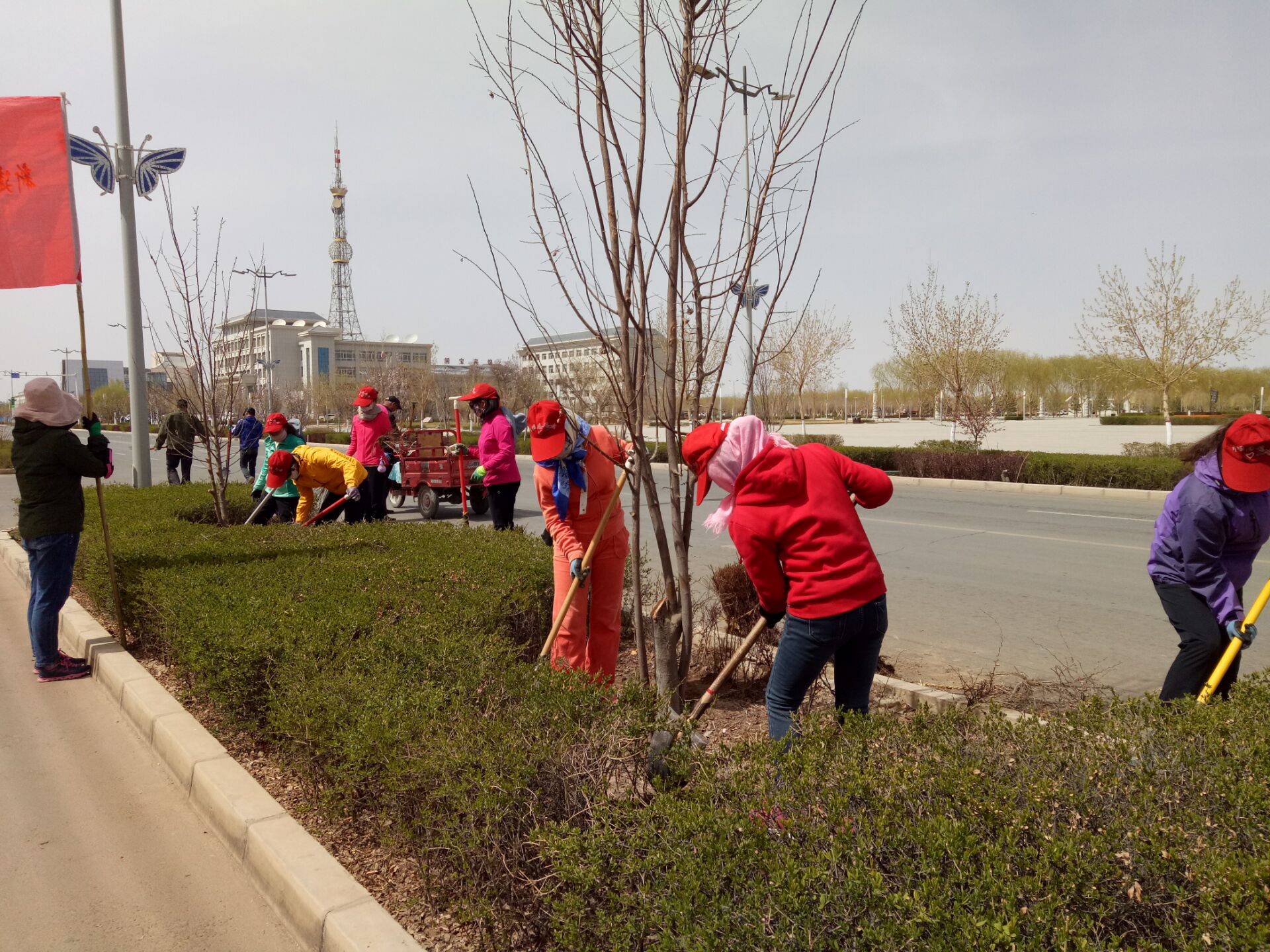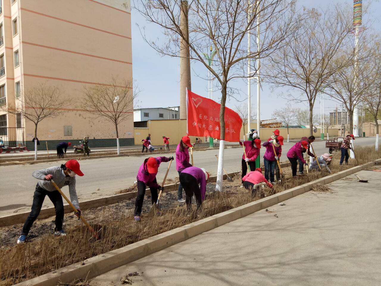 4月10日,城关镇妇联组织8支巾帼志愿者服务队参加全县义务植树造林活动, 活动现场一片热火朝天的景象,巾帼志愿者与镇、社区干部热情高涨,挥锄挖穴、扶苗培土,分工配合有序,认真的种下一颗颗绿色希望。