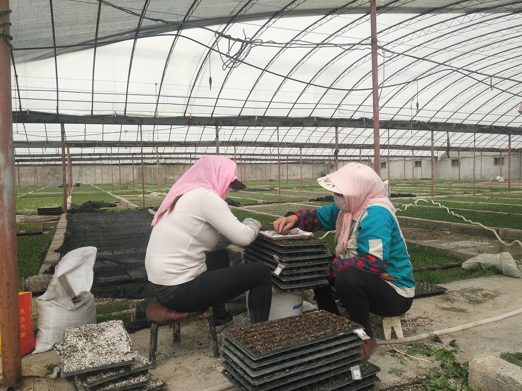 近日,走进高台县巷道镇王家村绿洋农业新技术开发有限公司的集约化育苗基地,我们可以看到好多妇女同志在各个大棚里忙碌的身影,她们有的正忙着在穴盘中点播种子,有的在整理穴盘中的辣椒苗。