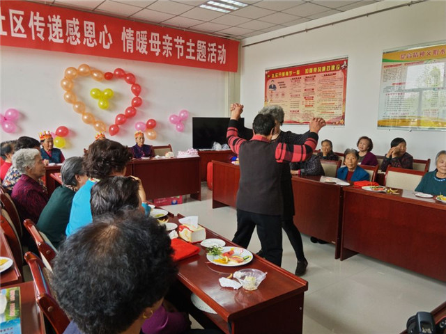 三是开展“传递感恩心 情暖母亲节”主题活动。为80岁以上单亲母亲集体过生日,祝福她们健康快乐!为行动不便的高龄老人送去慰问物资,鼓励她们克服困难,积极乐观的生活;为贫困单亲母亲送上慰问物资,让她们感受到社区党组织的关爱;最后开展了击鼓传花的游戏,大家唱老歌、说快板、一起舞蹈,一边回味年轻时的美好时光,一边歌唱今天的幸福生活。