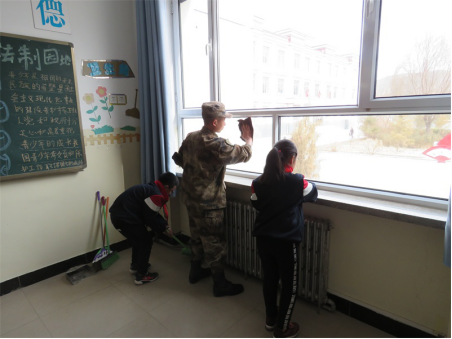 部队官兵和师生们还一起动手打扫校园卫生,整理教室,清除环境及河道卫生死角。经过一下午的共同劳动,帮助学校完成了安排的本周人居环境整治任务。