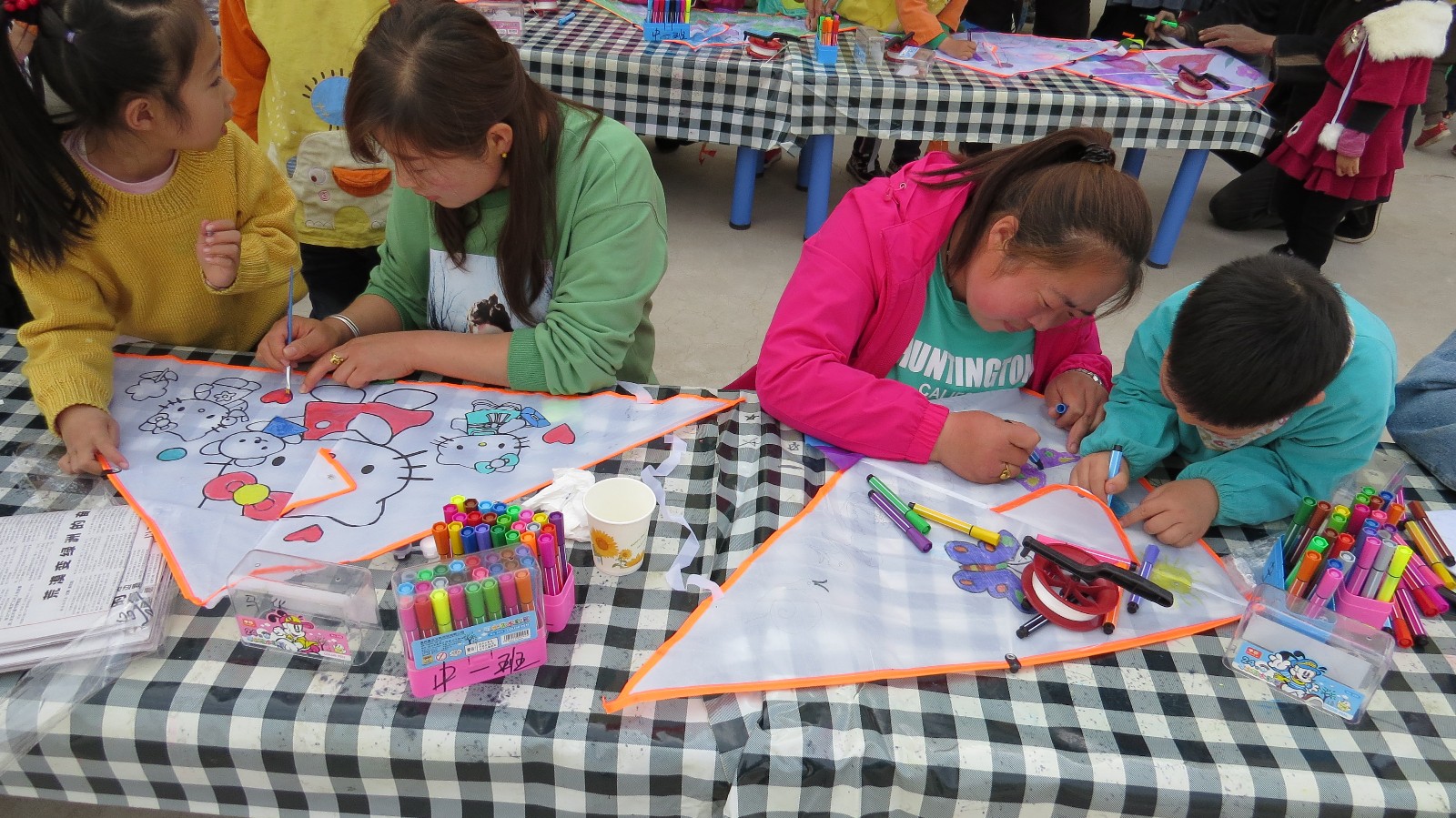 大朋友、小朋友齐动手,拿起画笔在风筝上勾勒线条,涂颜色,亲子亲密合作,既充满了快乐,又让孩子感受了中国的传统文化习俗,锻炼了孩子的动手能力和想象力,为孩子留下幸福的童年回忆,家长和孩子一起度过一段温馨时光。