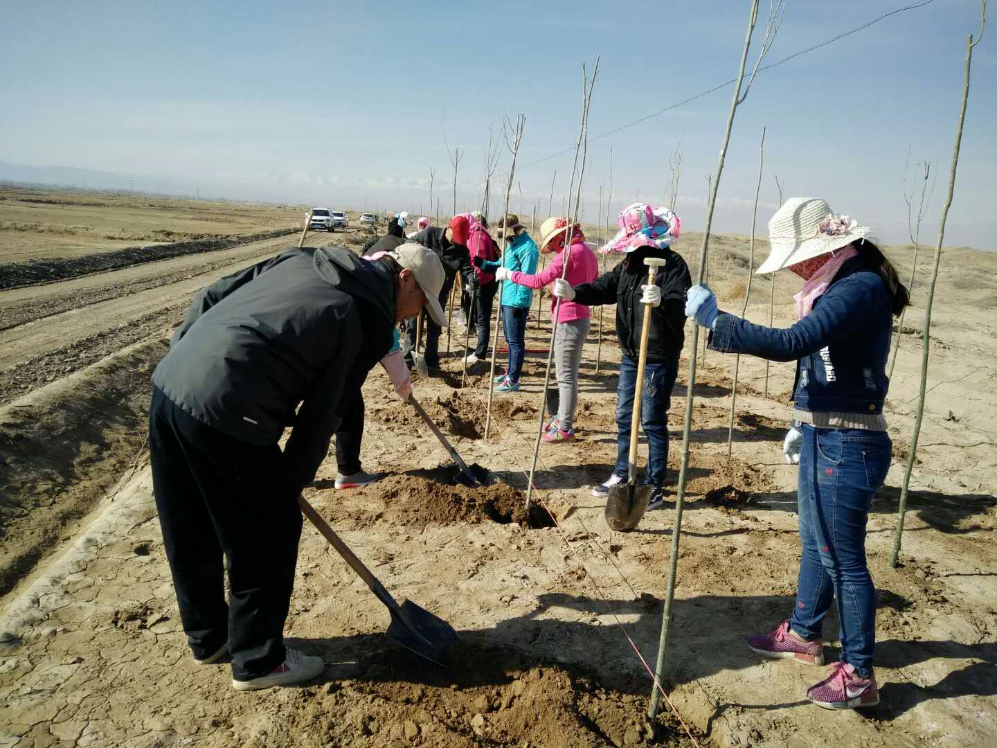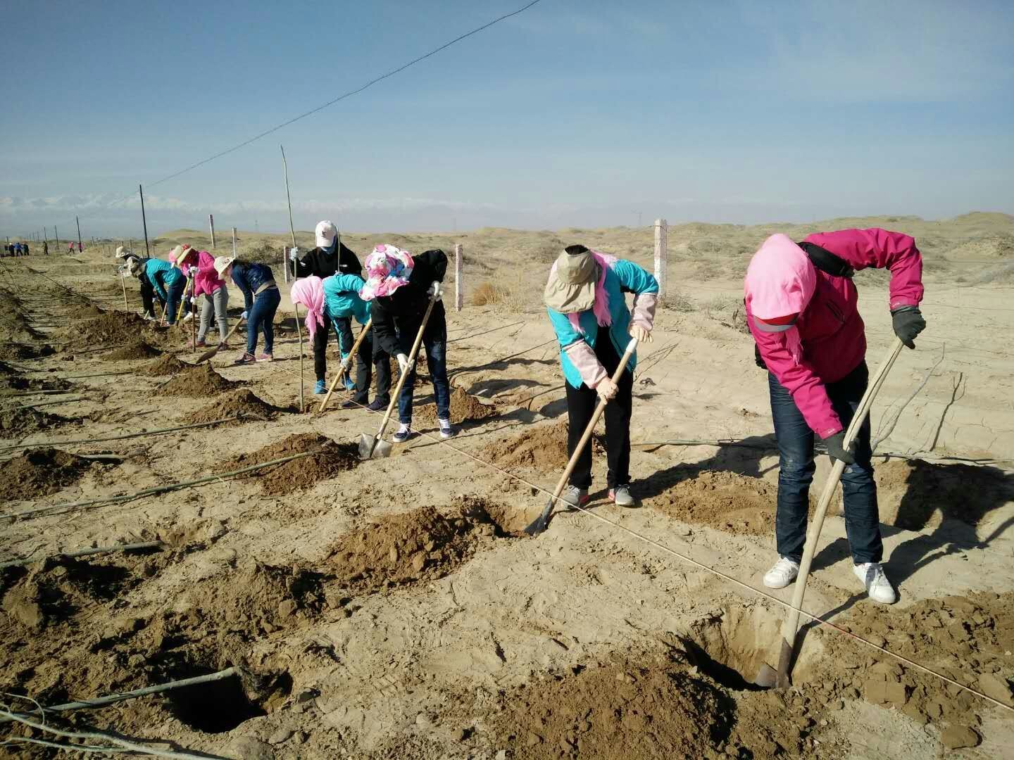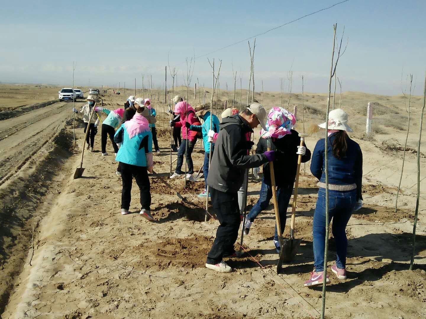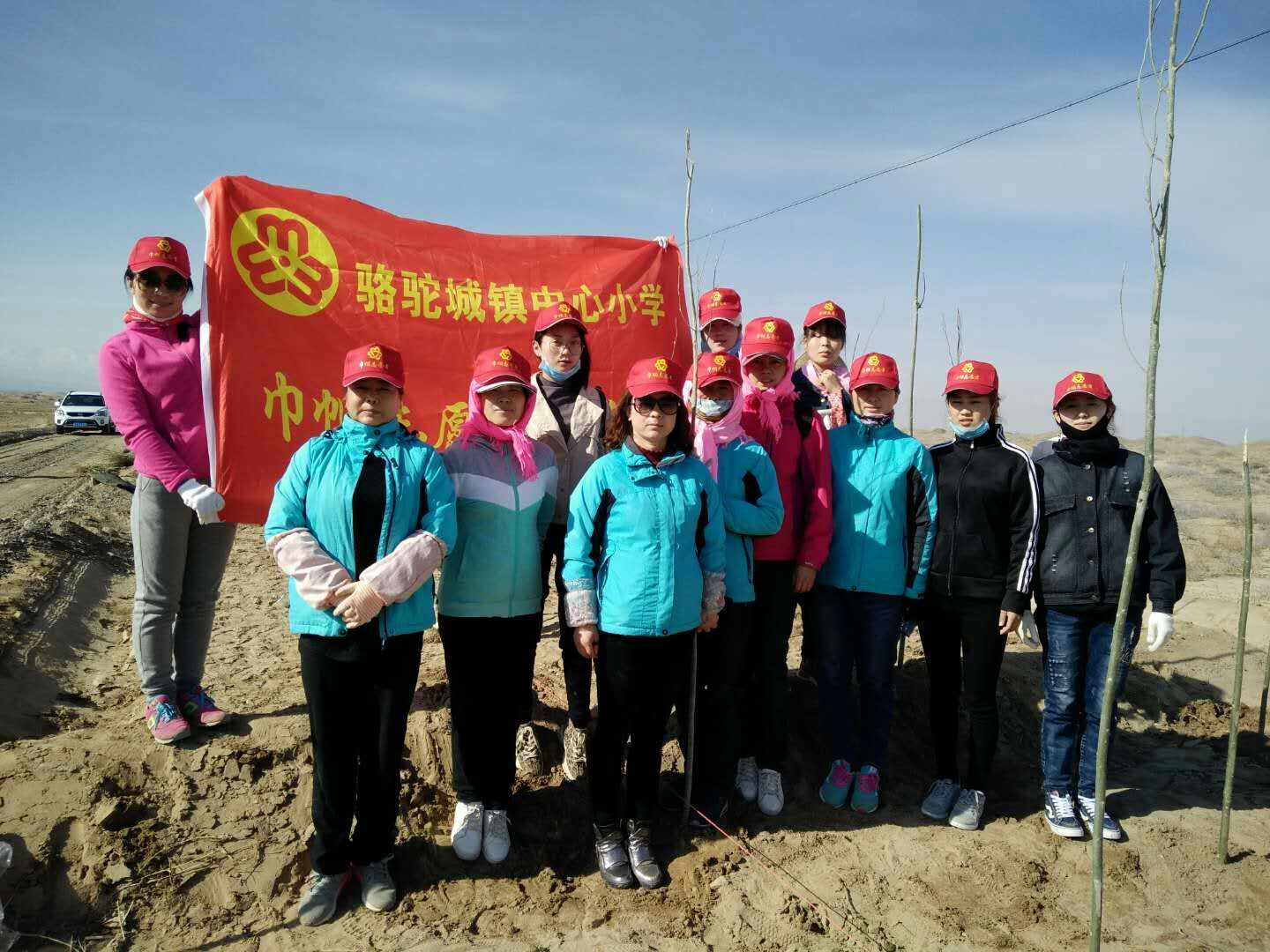 近日,骆驼城镇中心幼儿园妇委会组织巾帼志愿者到骆驼城镇青草湖农场沙漠地带开展义务植树活动,共种植树苗1000余棵。