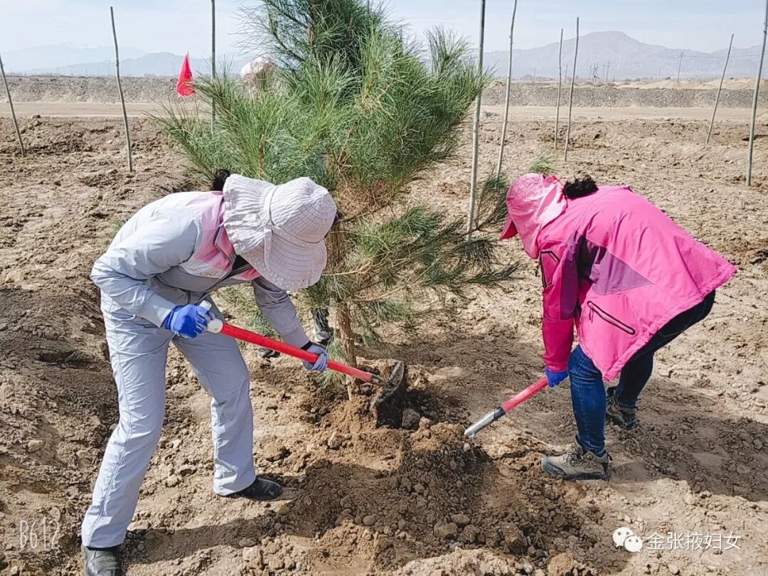 巾帼 一棵、两棵,千万棵;一抹绿、一片绿,再到满眼绿。巾帼行动正让甘州越来越美丽! 临泽县妇联 挥锹铲土、挖坑放苗、填土扶正、踩实浇水,一株株树苗深深扎根在这片土地上,在春风中昂首挺立,呈现出一派生机盎然的景象。