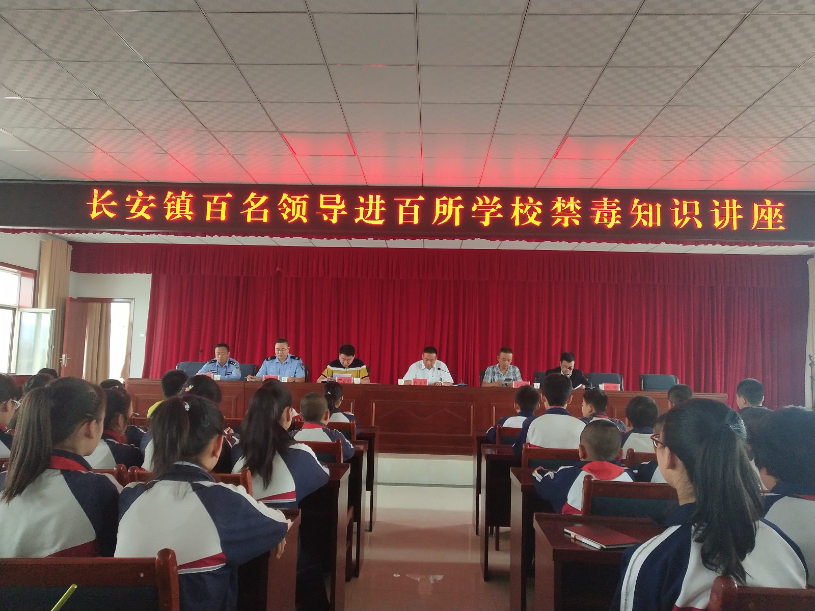 为全力推进“6.27”青少年毒品预防教育工程,全面深化“百名领导进百所学校”活动,切实提高青少年识毒、防毒、拒毒意识,6月26日上午,长安镇党委副书记曹振国走进长安中心学校开展了长安镇百名领导进百所学校禁毒知识讲座,近300余名师生参加了活动。