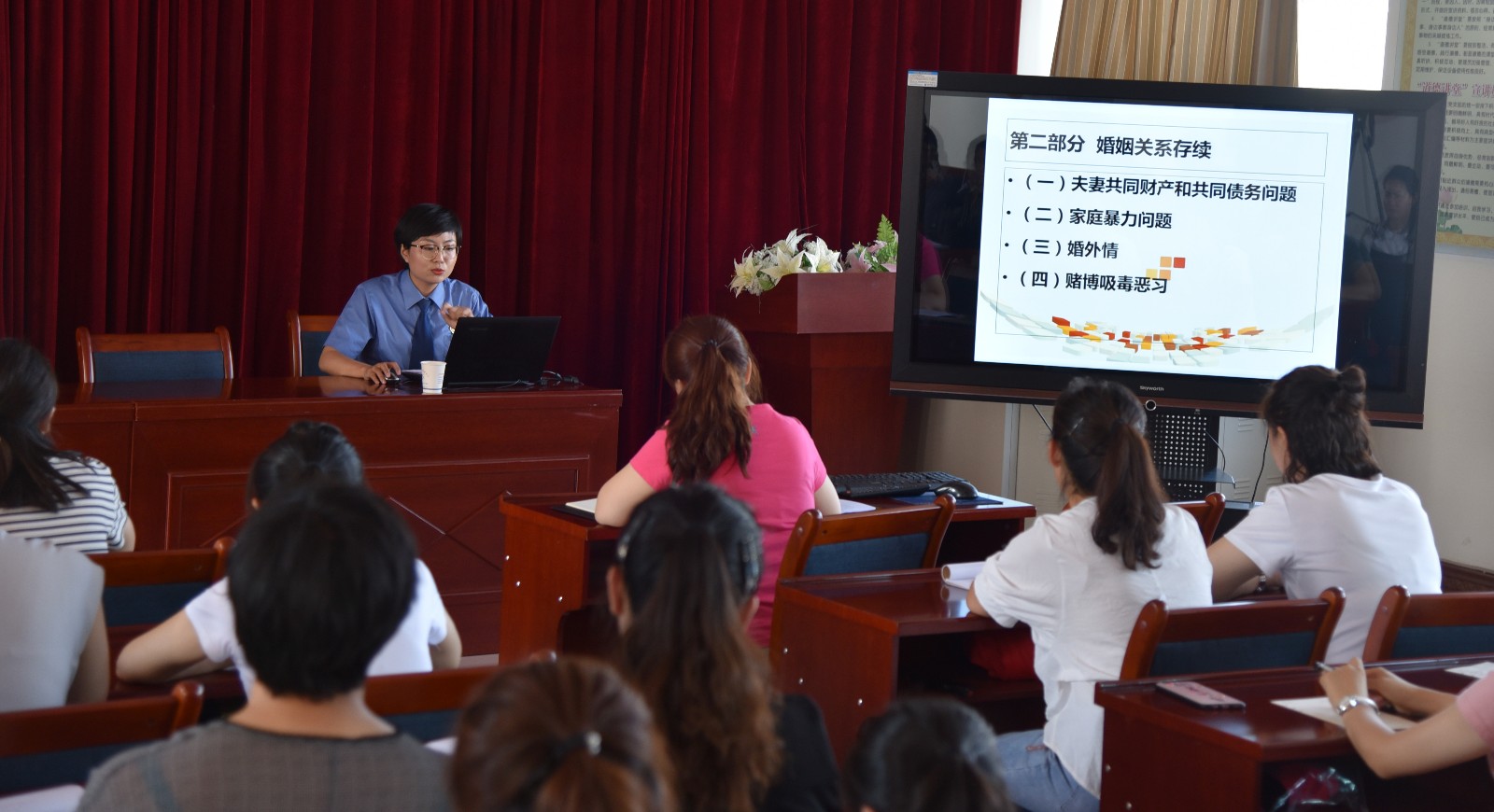 为增强妇女儿童维权意识,维护妇女儿童合法权益,提高知法、懂法、用法能力。高台县第一幼儿园妇委会于近日邀请法治副校长寇海华、曹慧为我园女教职工讲解了《妇女权益保护法》《婚姻法》内容。检察官曹慧结合具体案例,深入浅出地讲解了如何保护自己,维护自己的合法权利,如何防止家庭暴力的发生,并对新婚姻法进行了解读......教职工们触动很大,纷纷表示要保持自立、自强、自信、自尊的良好心态,正确面对生活中遇到的困难。
