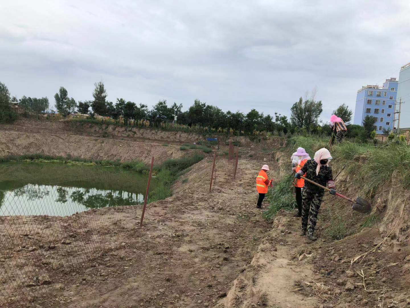 近日,长安镇妇联组织巾帼志愿者在郭家堡村污水渗坑周围种植芦苇。芦苇可以有效防止