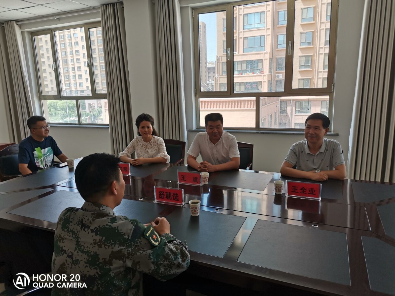 慰问团一行与部队官兵亲切座谈,详细了解官兵们的学习、训练和生活情况,并为官兵们送去价值2900元的2台打印机和1台刻录机和价值2000元的水杯,感谢他们为国防事业和保卫人民生命财产安全作出的贡献,提前祝贺他们“八一”建军节快乐。