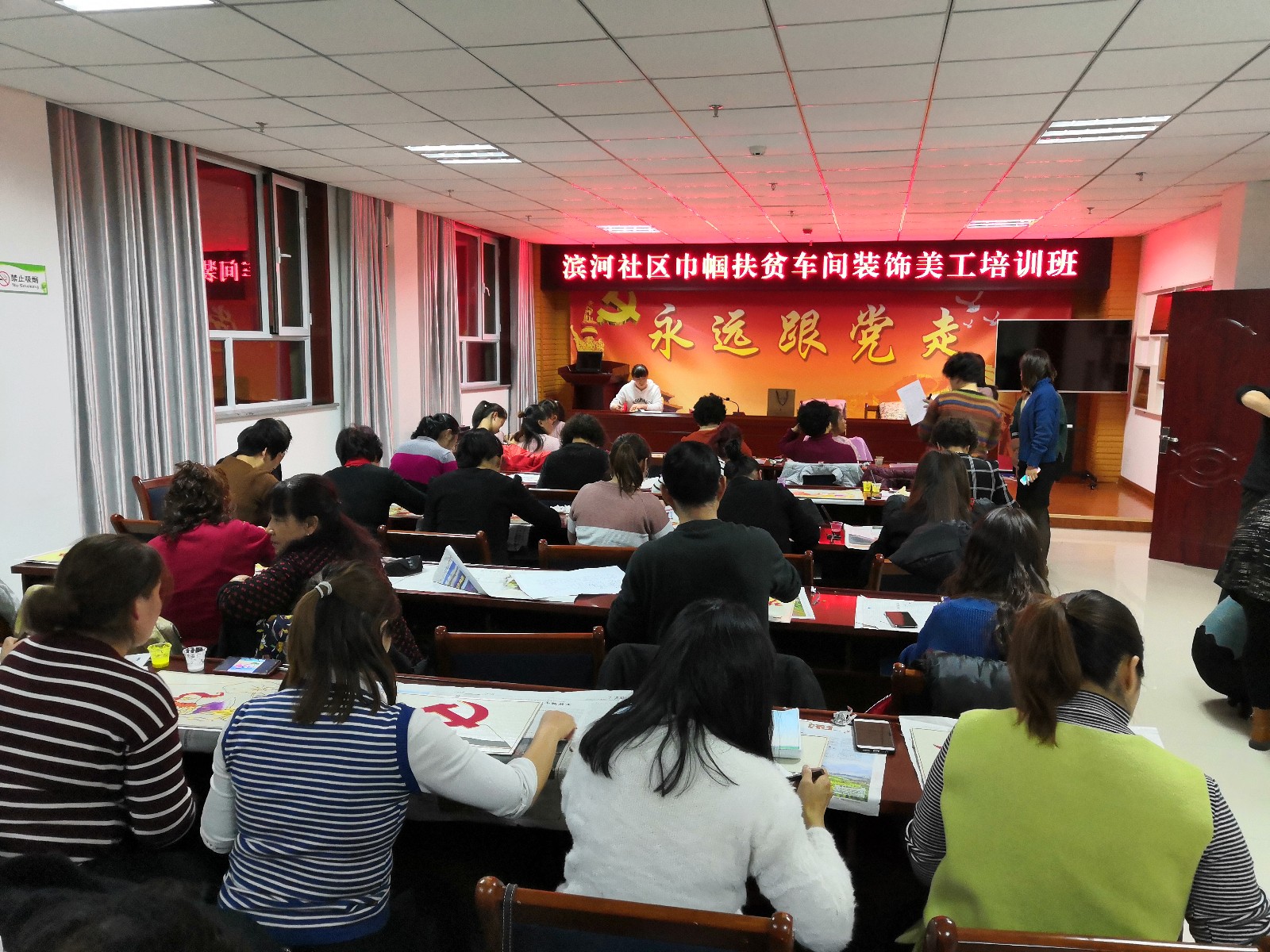 为帮助辖区妇女利用冬闲时间就业增收,为妇女姐妹搭建一个学习、实践与交流的平台。近日,高台县城关镇滨河社区妇联举办了巾帼扶贫车间装饰美工培训班。此次培训共有45名妇女参加,培训时间15天。