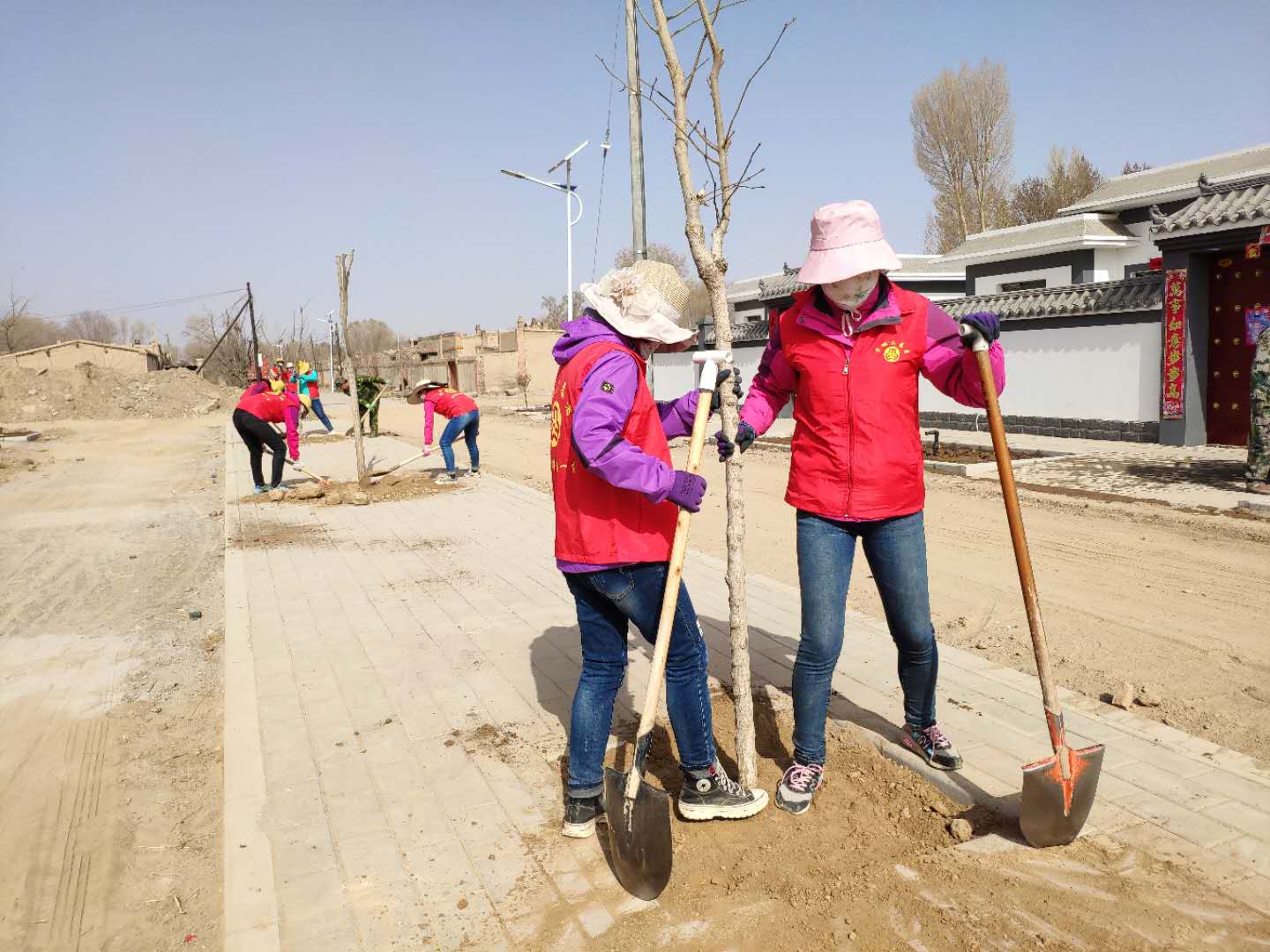 南华镇抢抓春季植树造林的黄金时机,把春季植树造林与美丽乡村建设相结合,来到南岔村开始造林绿化工作,镇机关女干部们带着铁锨、绳子,在绿化带中挖坑、放苗、培土,团结协作,认真负责地栽植着榆叶梅、香花槐、圆冠榆等优质绿化苗木,到处都是她们忙碌的身影和劳动的欢声笑语,不但保质保量完成造林任务,也为装扮南岔村频添几分亮丽的景色,为四面八方来的客人留下一份高台的美好。