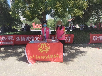 8月24日,山丹县妇联在龙首广场开展以“弘扬诚信文化,建设信用山丹”为主题的诚信文化集中宣传活动。
