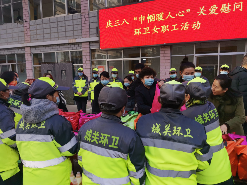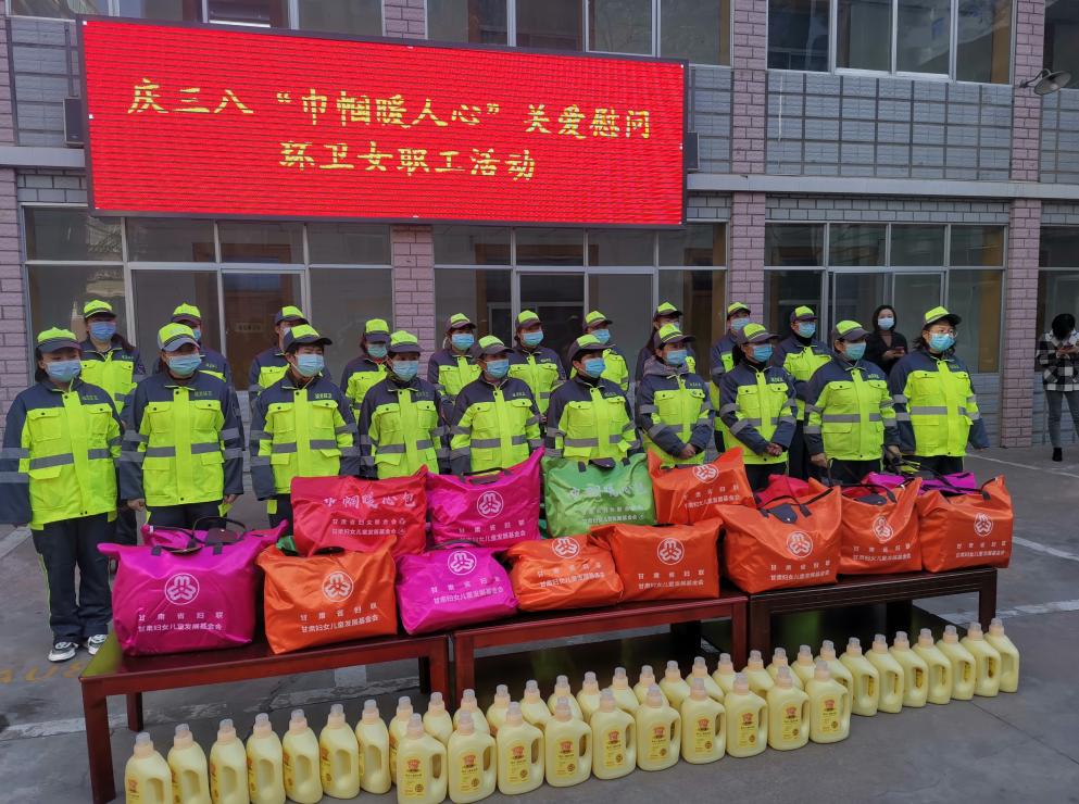 3月7日,省妇联在兰州市城关区市容环卫工作中心开展“庆三八·巾帼暖人心”慰问环卫女职工活动。省妇联党组成员、副主席王方,兰州市妇联党组书记肖迎珺,城关区政府副区长于素慧,区妇联主席郭斌及省市区三级妇联相关工作人员参加了活动。