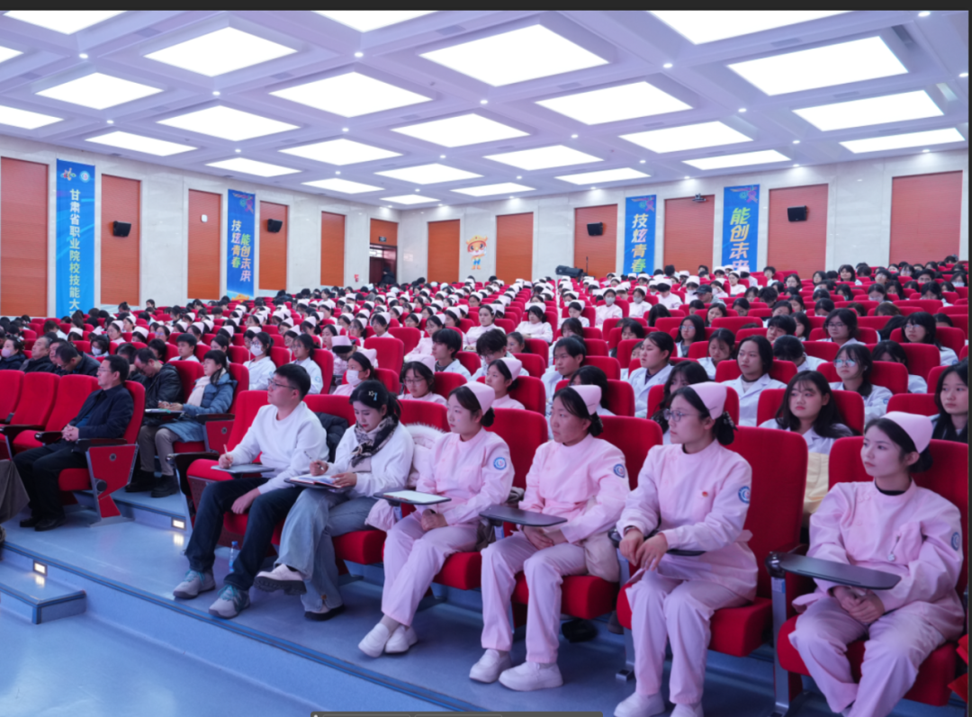 讲座由甘肃卫生职业学院党委副书记、院长王建成主持,院领导班子成员、思政课教师及学生代表近400人参加。
