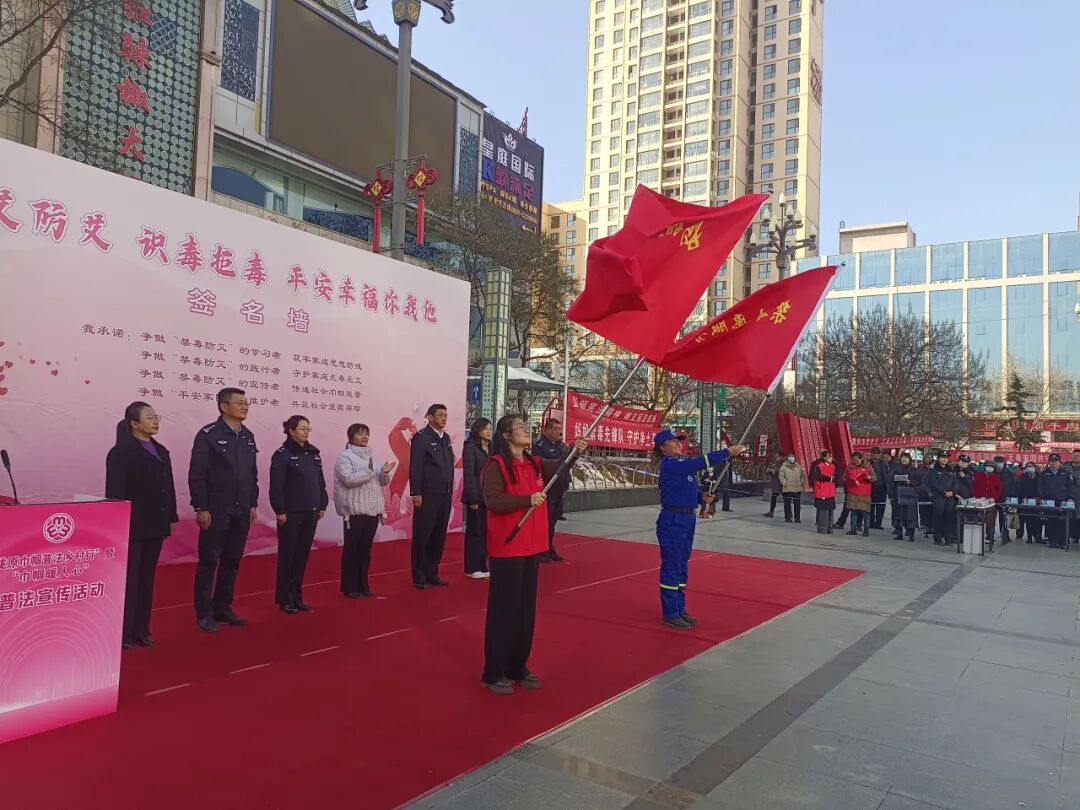 为深入学习贯彻习近平法治思想,在第38个“世界艾滋病日”、“12·4”国家宪法日、“12·5”国际志愿者日来临之际,省妇联联合省禁毒办、省女子强制隔离戒毒所在兰州市榆中县举办“陇原巾帼普法乡村行”禁毒防艾普法宣传活动。省妇联、省禁毒办、省女子强制隔离戒毒所相关领导,兰州市、榆中县妇联及禁毒办相关负责人,县委宣传部、社会工作部、政法委、法院、检察院、公安局、司法局等相关单位以及巾帼志愿者、群众代表等300余人参加活动。