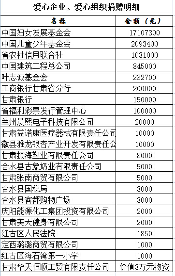 ――致为甘肃妇女儿童公益事业作出无私奉献的企业、组织及爱心人士