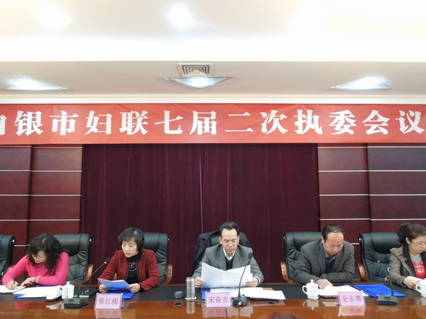 市委副书记、组织部部长宋奋吉出席会议并讲话。宋奋吉对全市经济发展、社会建设、党的建设等各方面取得的成绩做了介绍,指出妇联组织在推进全市经济社会发展中发挥了重要作用,尤其对市妇联在妇女小额担保贷款工作中做出的努力和成绩给予了充分肯定。对今年妇联工作提出了四点要求:一是要求全市各级妇联干部要把学习宣传贯彻十八大精神作为当前和今后一个时期的首要政治任务,要原汁原味学习十八大报告和新党章,准确把握十八大精神实质,切实增强学习的针对性和实效性。二是妇联工作要与市委、市政府中心工作高度契合,首先要通过各种渠道学习了解市委、市政府中心工作,掌握全局、熟知大局,围绕重点、服务大局,精心设计好载体,打造妇联特色工作,有针对性地谋划妇联工作、推进妇联工作、创新妇联工作。其次是要善于创造、开拓创新、解放思想,创新包括工作理念创新、工作内容创新、工作措施创新,创新不是对已有工作的否定,而是把上级工作要求本土化、具体化、细化,把自己工作的特色搞特,形成特色、产生亮点。三是维护妇女儿童的合法权益。妇联组织的本质特点是代表妇女儿童的利益,在新的社会环境、新形势下,家庭暴力、虐待儿童呈现出新的特点,妇联组织要善于敏锐的把握发展大势,善于研究新形势下的新情况、新变化、新趋势,针对这些情况研究制定新举措、新办法,以解决问题,对于妇联组织不能解决的问题要及时向市委、市政府汇报反映情况。四是从组织建设、干部配强、机制健全三个方面加强妇联组织自身建设。组织建好就是要把工作做到实处;干部配强就是要选派能力素质和职位相匹配的干部,重视全体干部能力的提升;机制健全就是要推进妇联组织的机制建立完善。妇联工作是党的群众工作的重要组成部分,也是重中之重,广大妇联干部要有自信、有荣誉感,要靠自己的实力、影响力、吸引力推进妇女工作。 会上,对市妇联七届执委进行了替补,市妇联七届执委替补候选人经1月8日市妇联七届常委会推荐表决通过。市妇联主席蔡红梅作了题为“围绕大局,彰显特色组织引领广大妇女为我市全面建成小康社会而努力奋斗”的工作报告,工作报告回顾了2012年工作,提出2013年全市妇联工作要围绕中心、服务大局,按照妇女思想道德建设“三项教育”,促进妇女发展“三项行动”,搭建维权工作“四个平台”,加强妇联组织“三项建设”,着力打造特色工作“三大亮点” 的“334433”总体思路,通过组织妇女、引领妇女、服务妇女、引领广大妇女为我市全面建成小康社会做出新贡献。