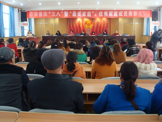 3月4日,景泰县召开庆“三八”暨“最美家庭”、优秀家庭成员表彰大会,表彰县级最美孝老爱亲、夫妻和美、教子有方、持家有道、勤劳致富、和谐幸福、低碳环保、邻里友善、热心公益、明礼诚信等十类“最美家庭”100户,好婆婆、好媳妇、好儿女、好丈夫、好妻子等五类优秀家庭成员50名。县委常委、组织部部长马世斌,县委常委、宣传部部长吴军芳,县人大常委会副主任韦秉花,县政协副主席张雪莉等领导出席会议。县政府副县长周育洁主持大会。