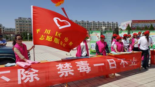 平川区妇联组织宝积镇、兴平路街道、长征街道、电力路街道巾帼志愿者60余名参与了禁毒宣传月活动启动仪式,悬挂横幅一条,协助发放禁毒宣传资料2000余份。