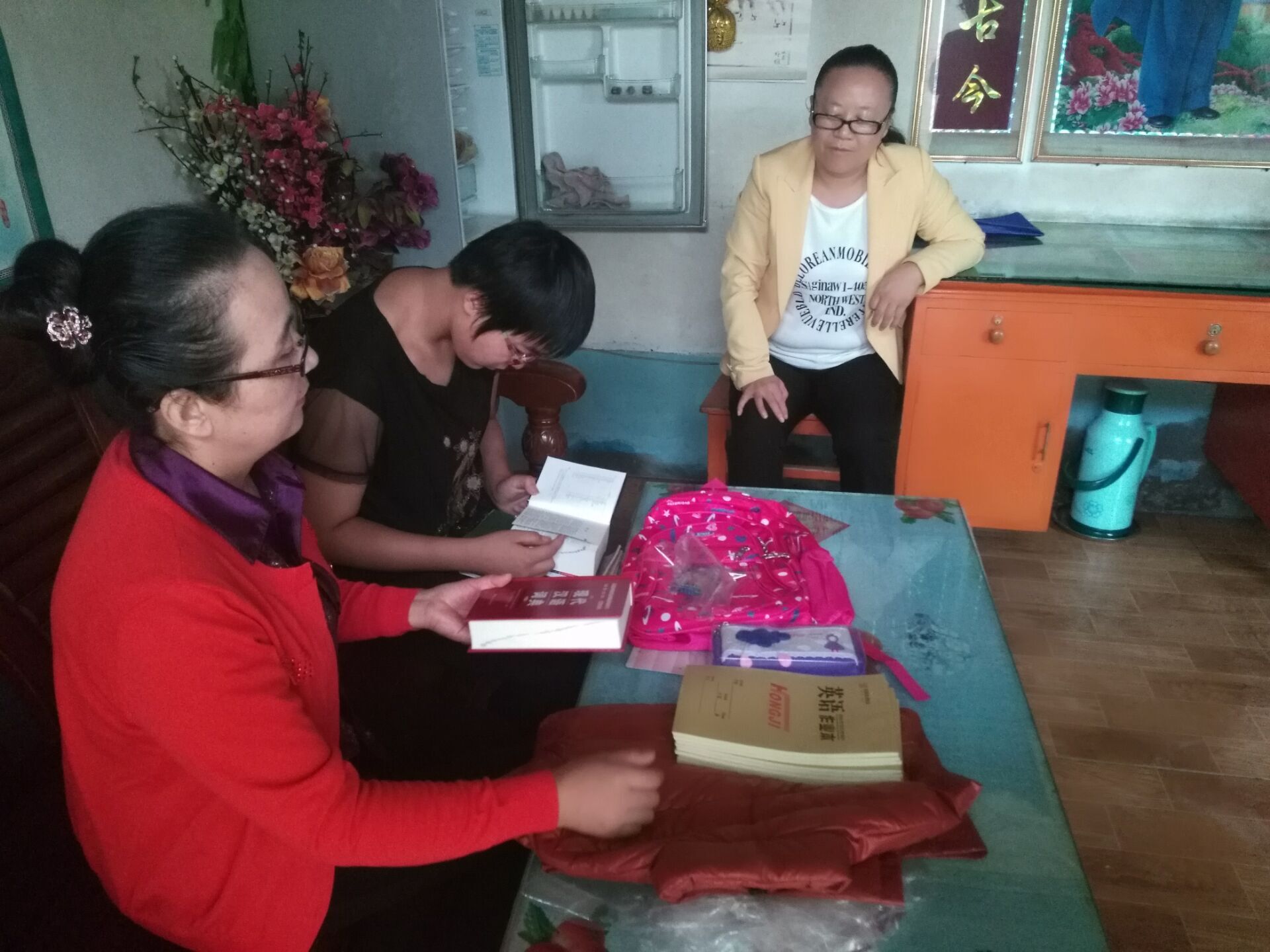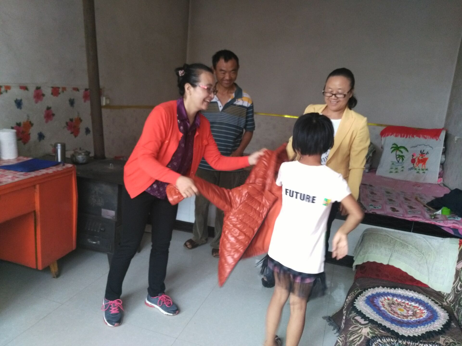 清晨,雨还在淅淅沥沥地下着,县妇联全体干部首先走进赖文静家,土坯房外面虽然有点破旧,但是屋内拾掇得很整洁,父母长期不在身边,赖文静从小跟随爷爷生活,学习很努力,自立能力很强,桌子上放满了各类奖状。当她接过县妇联送来的书包、英汉词典、现代汉语词典、本子、笔袋等学习用具和羽绒服时,高兴地连声说“谢谢阿姨们,这些学习用品都是我渴望已久的,以后我会更加努力学习。”