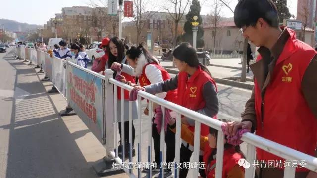 3月6日下午,靖远县妇联干部和团县委志愿者组织全县青年志愿者、靖远一中、二中、三中、四中、五中、六中、七中、八中、职专团员青年2000余人积极投身城市清洁行动,在南街、师范巷、风雷街、钟鼓楼、意大利风情街、人民广场及政府统办楼前等县区主要干道及路旁两侧开展志愿活动。活动内容主要打扫卫生、拾捡垃圾、清除小广告、擦洗护栏等。青年志愿者们用自己的行动为城市清洁环保、建设宜居新环境、共建美好靖远贡献一份力量。