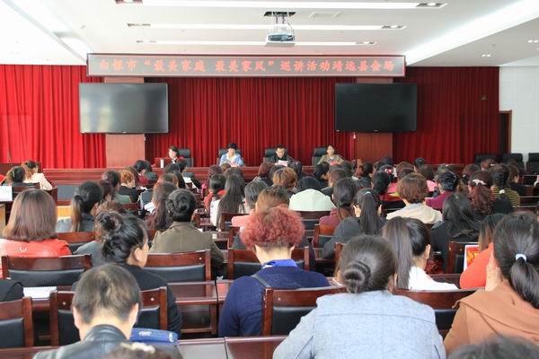 为宣传群众身边的“最美家庭”及感人故事,积极传承夫妻和睦、尊老爱幼、科学教子、勤俭持家、邻里互助的家庭美德,引导妇女和家庭在参与中接受道德教育、提升文明程度,引导广大家庭弘扬中华民族传统家庭美德,倡导良好家风,加强家庭教育,使社会主义核心价值观潜移默化地走进每个家庭,走进人们心灵,真正做到内化于心,外化于行,推进家庭文明建设。4月18日—4月20日,白银市在各县区共举办“最美家庭最美家风”巡讲活动五场,来自各县直机关、各乡镇妇联、群众代表近2000人参加活动。