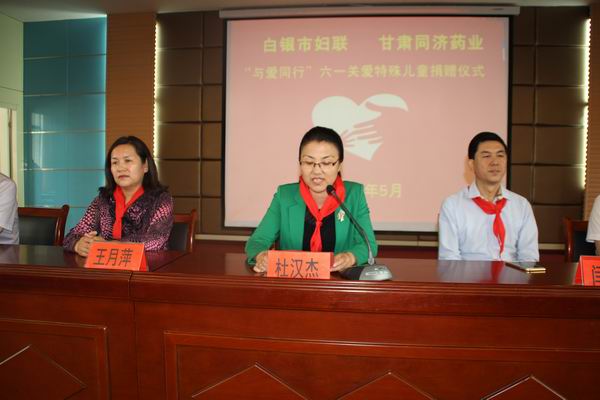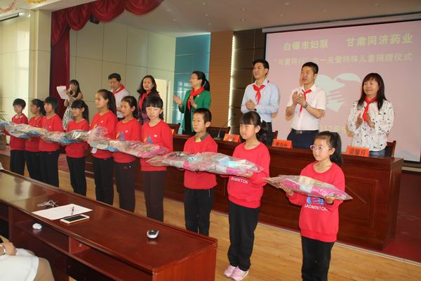 带着“六一”国际儿童节的祝福,带着对特殊儿童的关爱之情,5月31日上午,白银市妇联携手甘肃同济药业公司在市特殊教育学校开展“与爱同行 六一关爱特殊儿童”捐赠仪式。白银市妇联党组书记、主席杜汉杰,甘肃同济药业公司总经理闫沛敏出席捐赠仪式。此次捐赠仪式,为市特殊教育学校120名贫困特殊儿童捐赠价值12000余元的书包、文具学习用品及精美可口的蛋糕。全校200名师生参加了活动。