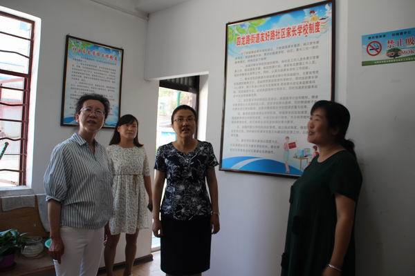 杜汉杰一行细心检查每个社区是否有挂牌“社区家长学校”;是否有组织机构、有规章制度、有教学场所、有教师队伍、有工作计划、有学习教材、有活动记载;活动记载是否备有图文记录材料(每季度至少开展一次活动并有活动通知、过程性图文、教案等材料)、是否打造社区特色的家长学校品牌活动,并认真对照测评要求,当场指出各社区家长学校工作存在的问题,要求对薄弱环节加大力度进行专项整改。