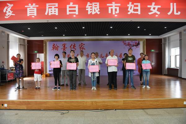 8月8日上午,市妇联举办“翰墨传家”首届白银市妇女儿童书画作品展开展仪式,本次展览的140余幅书画作品来自全市妇女儿童之手,她们创作的书画作品表达了爱党、爱国、爱家乡的真实感情,展览时间8月8日至8月13日,为期6天。