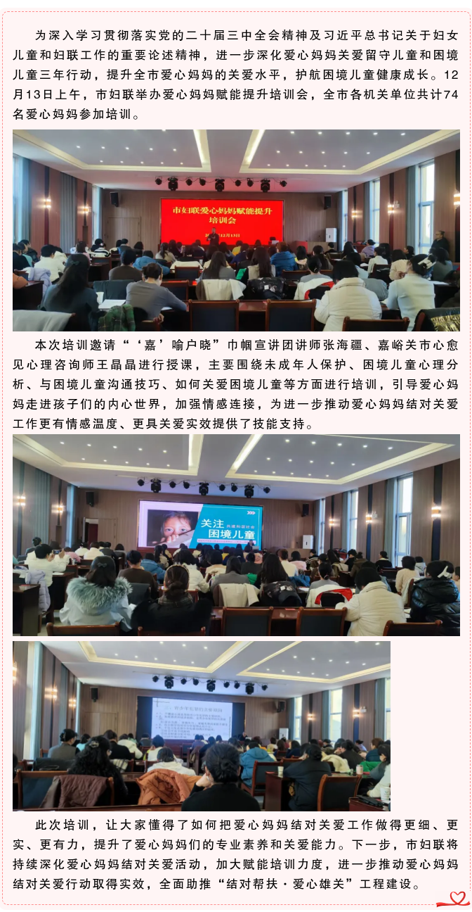 嘉峪关市妇联举办爱心妈妈赋能提升培训