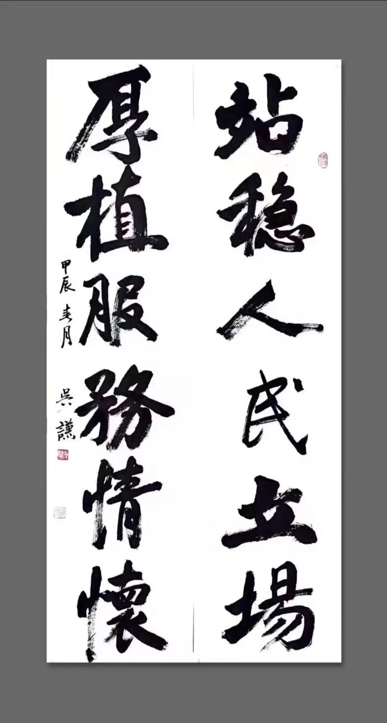 而就在几个月前,我也踏上了何坝镇这片熟悉的土地,成为一名基层项目人员。报到那天,使命感在心中油然而生。我告诉自己要以姥爷和父亲为榜样,认真对待每一项任务,始终把责任与担当牢记在心,闲暇时,我也会拿起毛笔,慢慢学着他们的样子,在墨香中寻找宁静与力量。在我而言,家风就凝聚在我向老百姓宣传政策的成就感里,凝聚在遭遇失败后的越挫越勇里,更凝聚在我第一次写下“甘为孺子牛”这五个大字里。