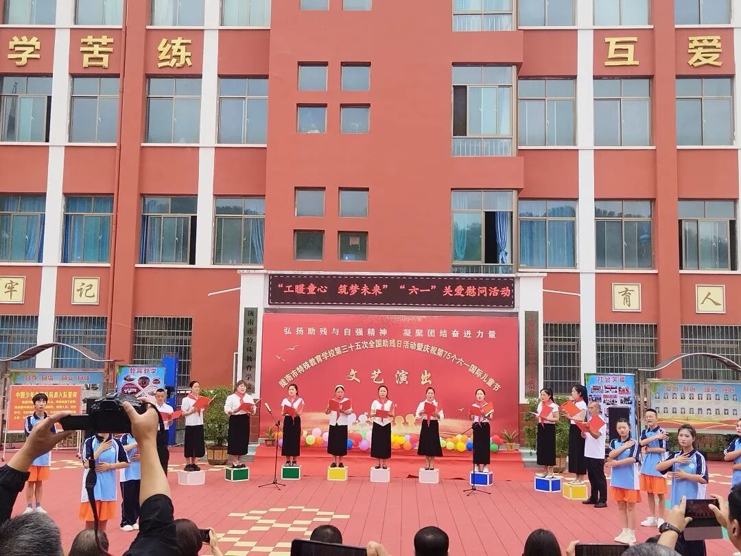 5月28日,成县妇联联合县残联、县总工会、县图书馆等单位走进陇南市特殊教育学校,开展“牢记党的教导 争做强国少年”慰问特殊儿童活动,共同为孩子们送上节日的祝福和礼物。活动中,成县妇联和各单位负责人们将六一儿童节礼物送到孩子们手中,并与他们亲切互动,鼓励他们保持乐观心态、自强不息、勤奋学习。收到礼物的孩子们用纯真的笑容表达感谢。孩子们为大家表演了精心准备的节目,大家也为孩子们的精彩表现送上掌声与鼓励。